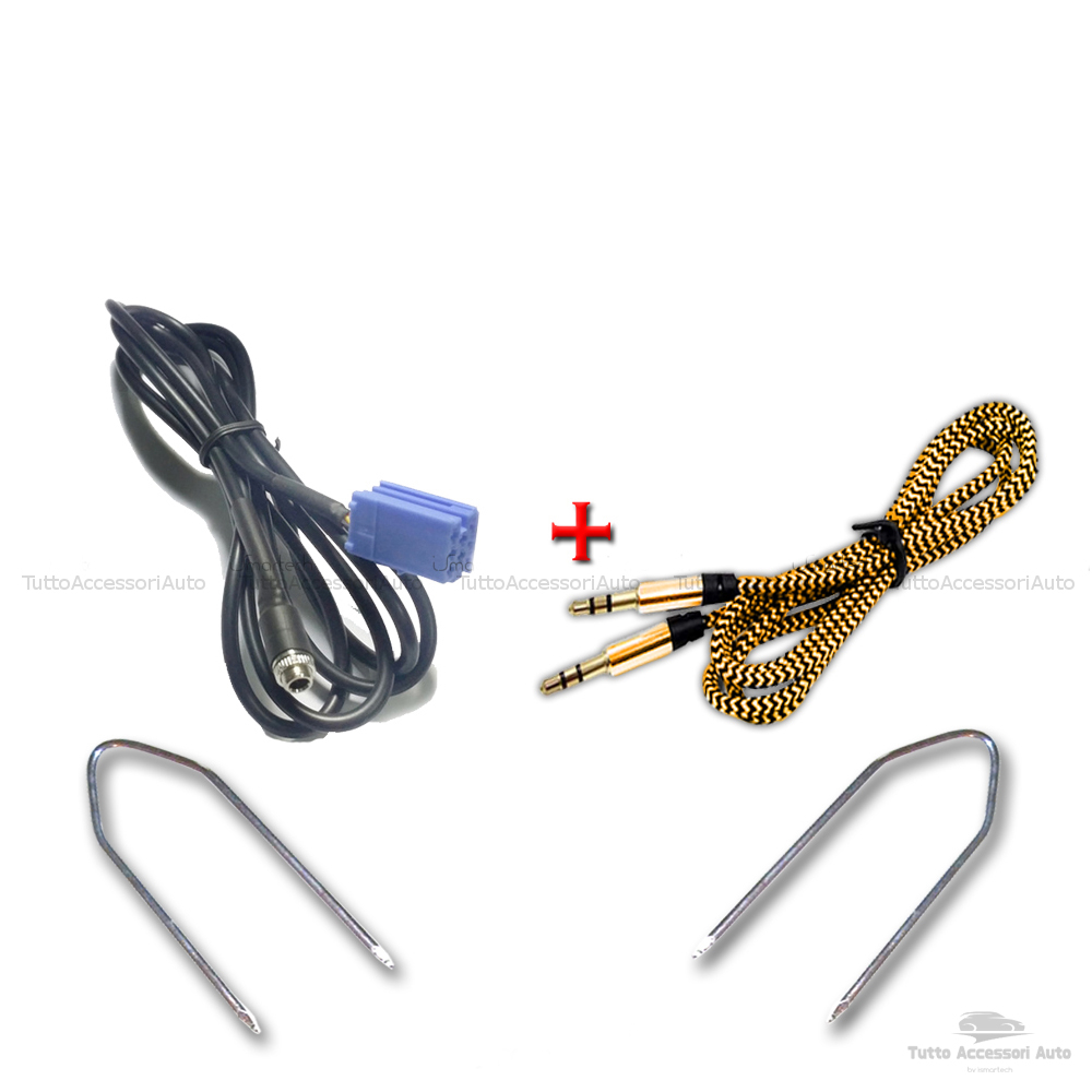 DESCRIZIONE Il cavo aux consente di collegare una sorgente audio, smartphone, ipod o lettore mp3 alla vostra autoradio Il cavo AUX mini ISO dispone di un jack femmina da 3,5mm tipo il jack delle cuffie. Fondamentale è la schermatura di cui è dotato il cavo. . Un' ulteriore protezione è fornita dal rivestimento che lo rende molto resistente agli strappi e all'usura. Il cavo è lungo 150 cm. Tale misura vi consente un pratico e facile utilizzo