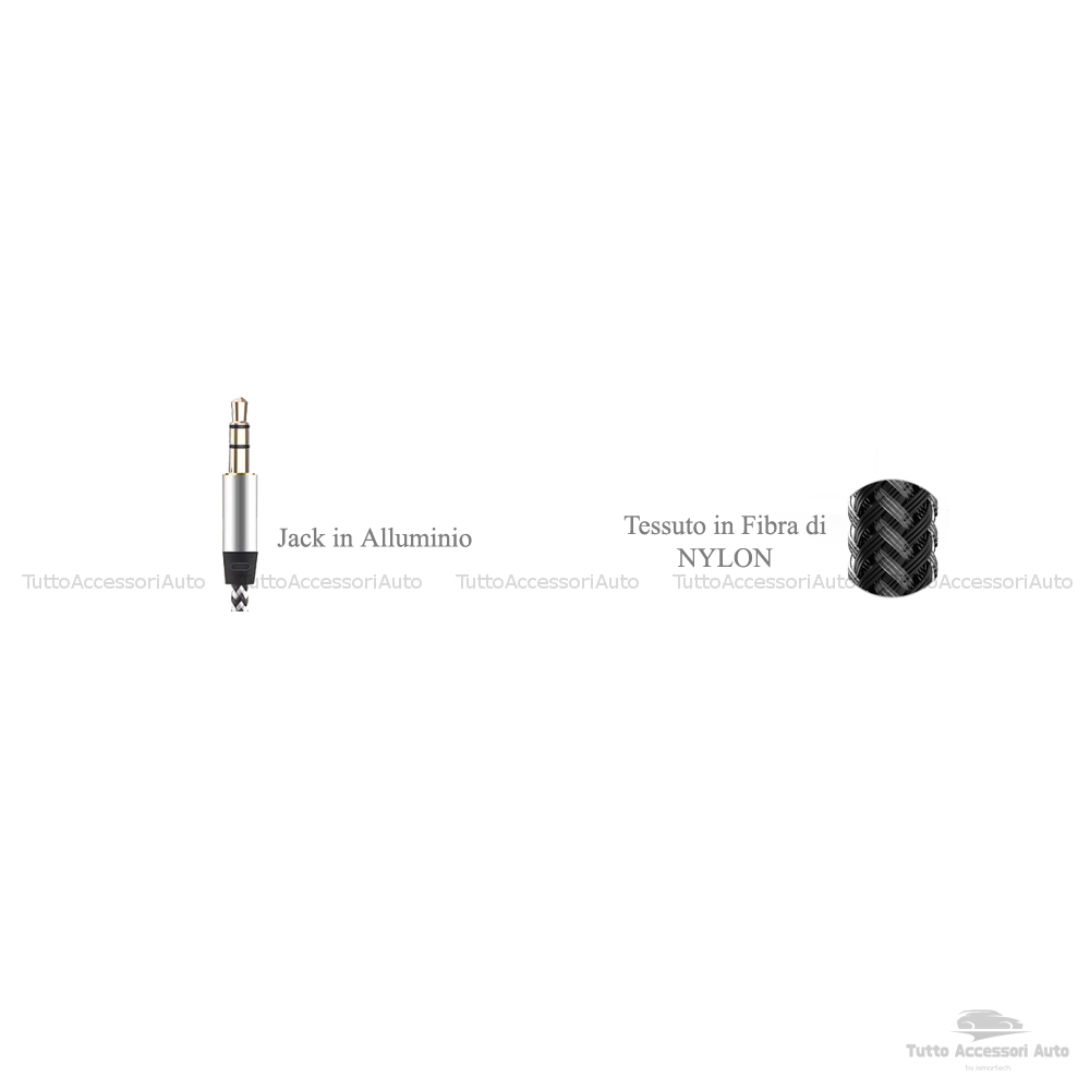 CONTENUTO DELLA CONFEZIONE n.1 cavo aux (lunghezza 150 cm) con jack femmina per autoradio di serie montate su auto Fiat Bravo (produzione dal 2007 in poi); n.1 cavo audio Besync con n. 2 jack maschi dorati in lega di alluminio da 3,5 mm e rivestito in nylon; colore grigio (grey); lunghezza 100 cm