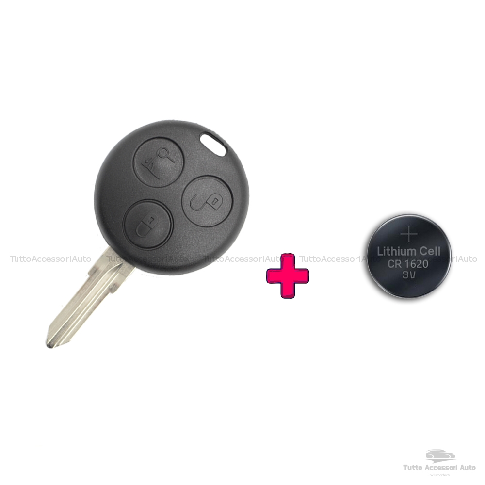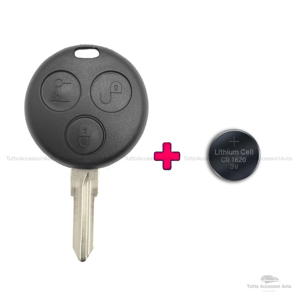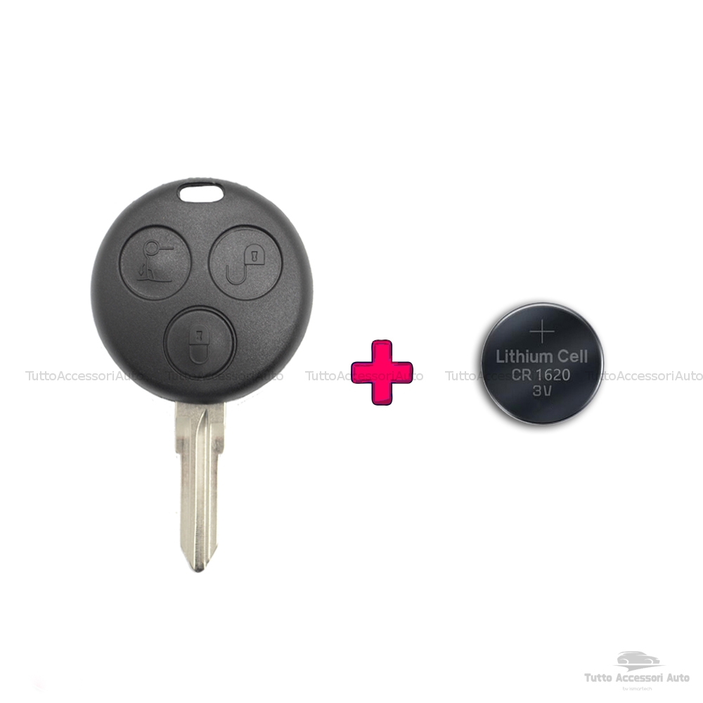 1neiSmartech Kit Chiave + Batteria Cr1620 Cover Guscio Scocca e Lama per Telecomando 3 Tasti Autovetture Smart Fortwo 450 Compatibile No Logo No Trasponder No Elettronica Guscio + Lama + Batteria
