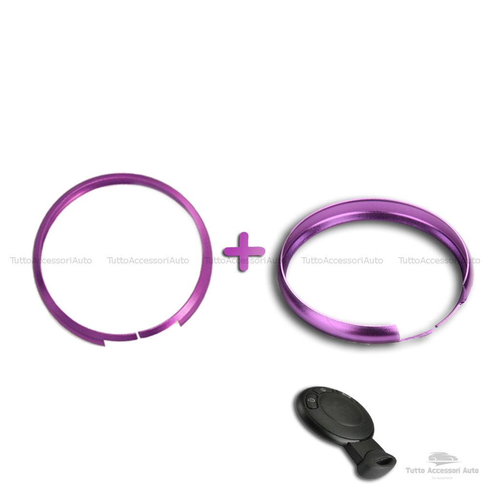 1neiSmartech Anello Decorativo 2 Pezzi Cover Ring per Auto Mini Cooper One D S Countryman in Alluminio Viola Due Pezzi Cerchio Guscio Scocca Telecomando Chiave Portachiavi