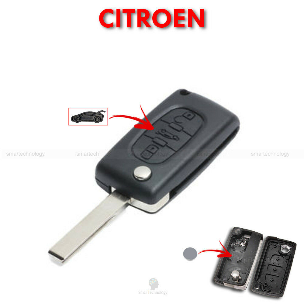 DESCRIZIONE Guscio di ricambio e lama per chiave autovetture Citroen. La scocca è priva di logo. Il logo potete staccarlo dalla vecchia chiave e incollarlo alla nuova scocca che vi spediamo