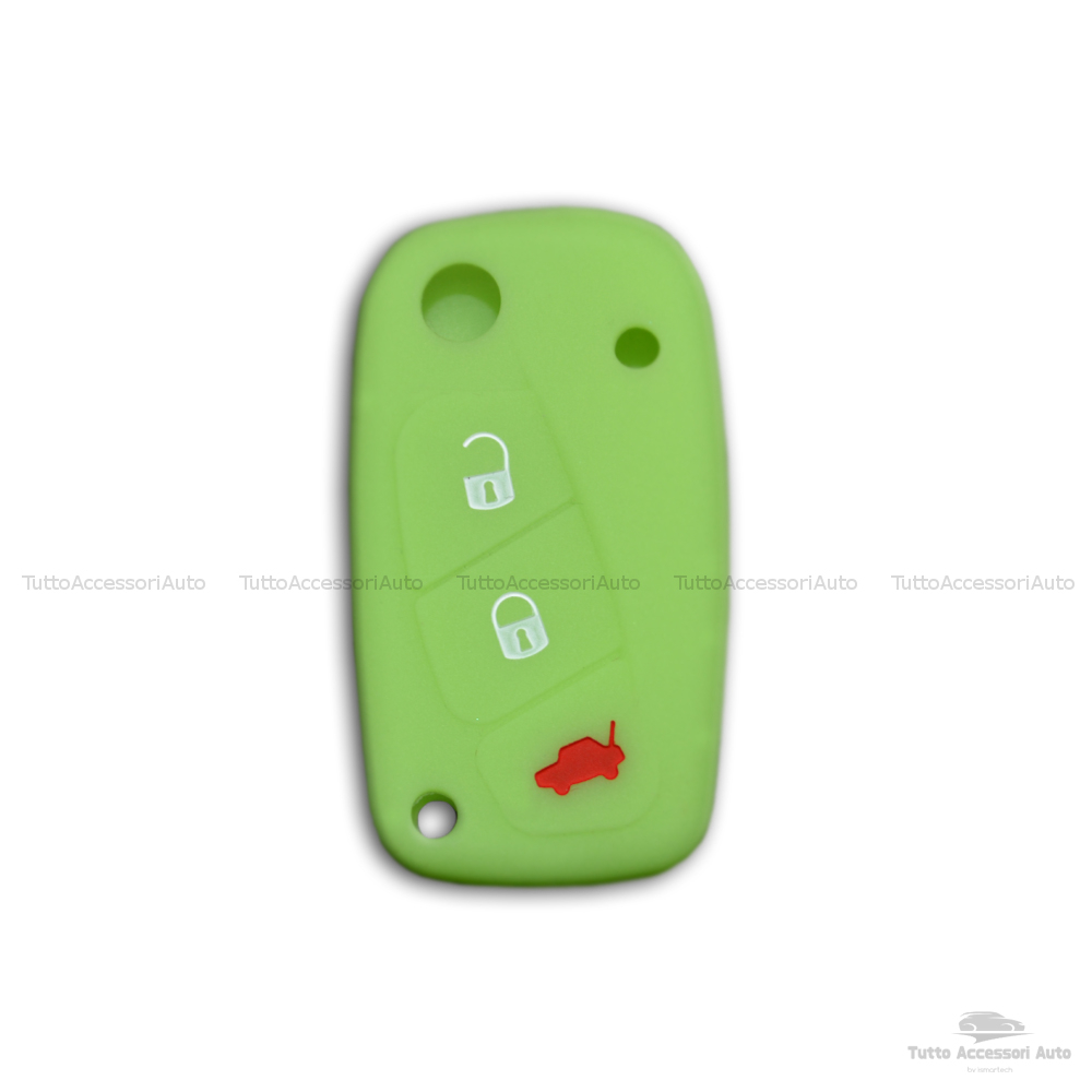 1neiSmartech Cover Colorata Protezione in Silicone Morbido per Scocca Guscio Chiave 3 Tasti Pieghevole Auto Fiat Grande Punto, Panda, Stilo, Bravo, Ducato, Ulysse (verde Lime)