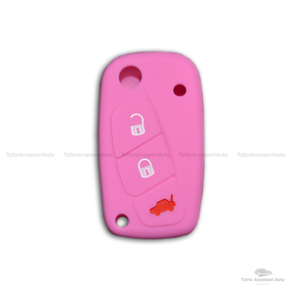 1neiSmartech Cover Colorata Protezione in Silicone Morbido per Scocca Guscio Chiave 3 Tasti Pieghevole Auto Fiat Grande Punto, Panda, Stilo, Bravo, Ducato, Ulysse (rosa)