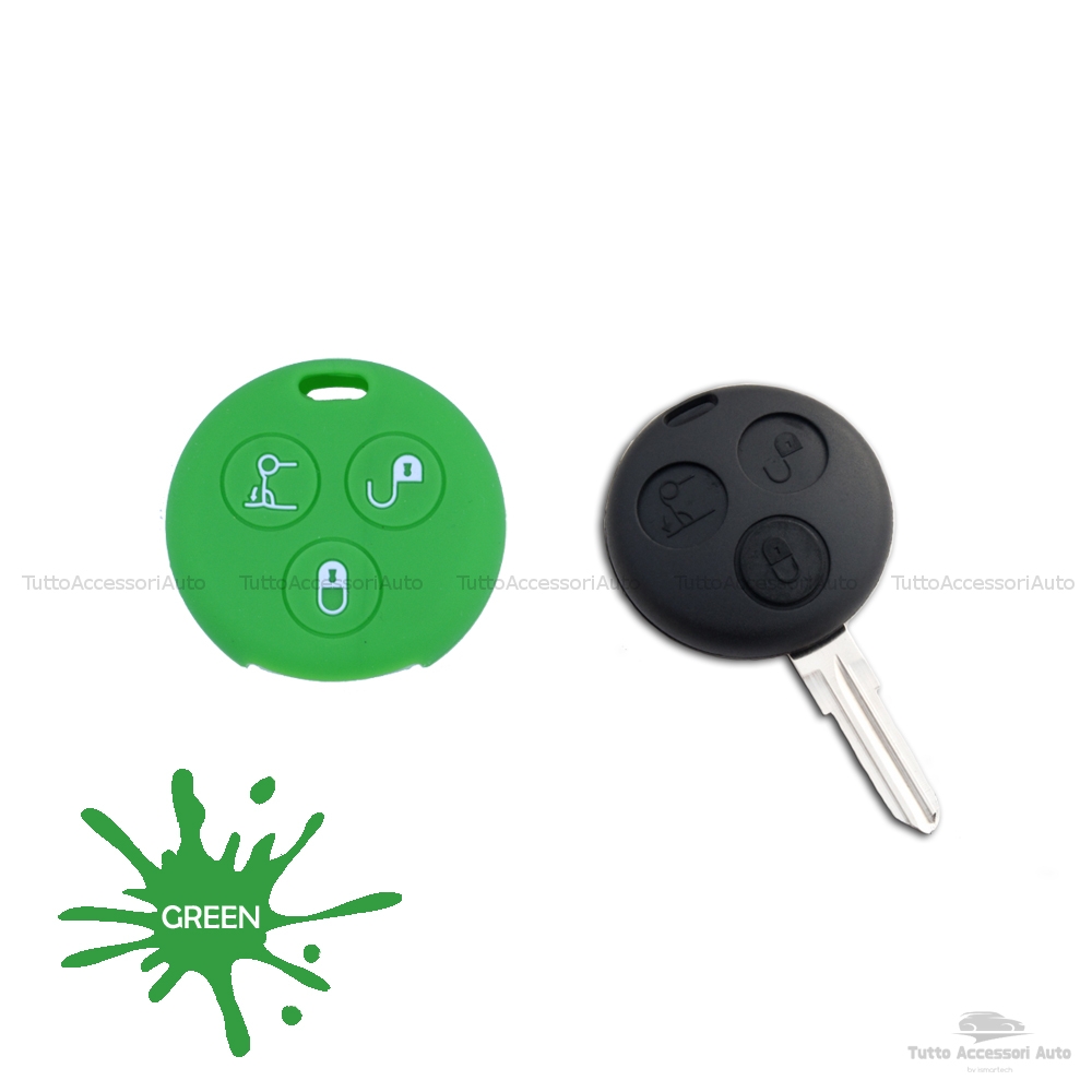 1neiSmartech Cover Guscio Colorato Case Materiale Silicone Morbido per Scocca Chiave Telecomando 3 Tasti Autovetture Smart 450 Fortwo Coupe' Vari Colori (verde)