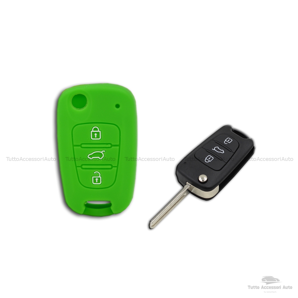 1neiSmartech Guscio Cover in Silicone Colore per Protezione Scocca Telecomando Chiave 3 Tre Tasti Auto Hyundai I10 I20 I30 Ix20 Ix35 Elantra Vari Colori (verde)