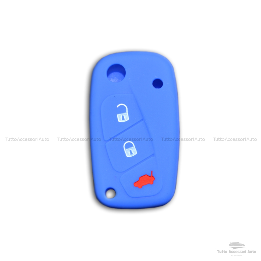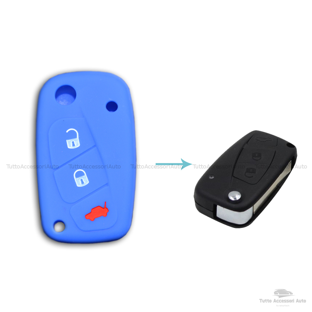 1neiSmartech Cover Colorata Protezione in Silicone Morbido per Scocca Guscio Chiave 3 Tasti Pieghevole Auto Fiat Grande Punto, Panda, Stilo, Bravo, Ducato, Ulysse (blu)