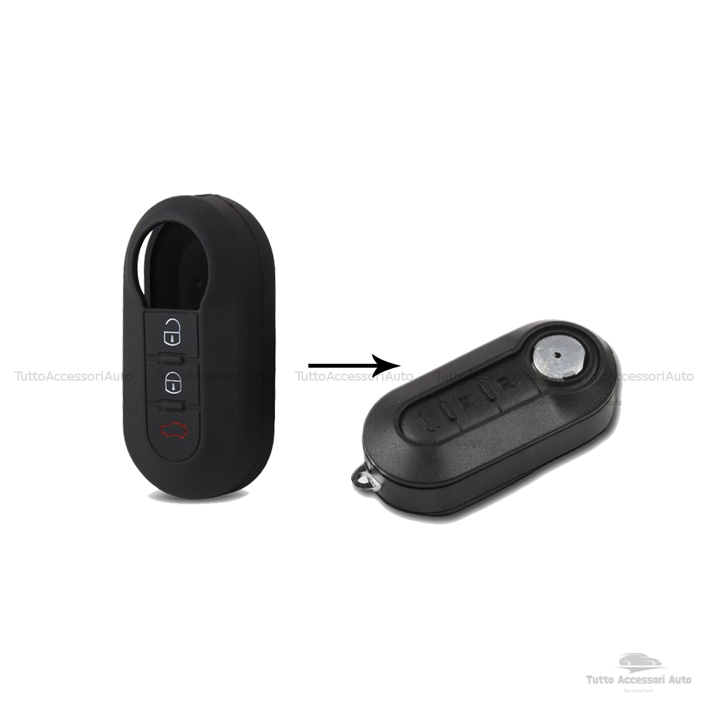 1neiSmartech Cover Colorata Protezione in Silicone Morbido per Scocca Guscio Chiave 3 Tasti Pieghevole Auto Fiat 500 (nero)