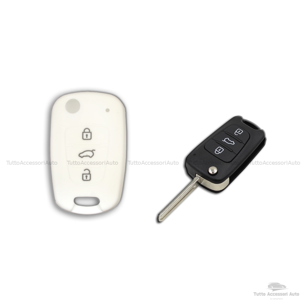 1neiSmartech Guscio Cover in Silicone Colore per Protezione Scocca Telecomando Chiave 3 Tre Tasti Auto Hyundai I10 I20 I30 Ix20 Ix35 Elantra Vari Colori (bianco)