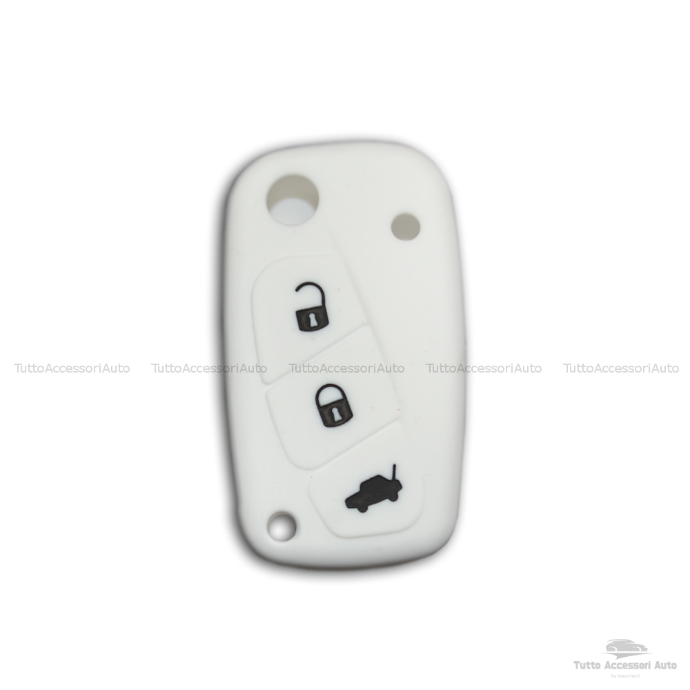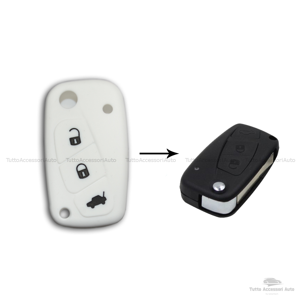 1neiSmartech Cover Colorata Protezione in Silicone Morbido per Scocca Guscio Chiave 3 Tasti Pieghevole Auto Fiat Grande Punto, Panda, Stilo, Bravo, Ducato, Ulysse (bianco)