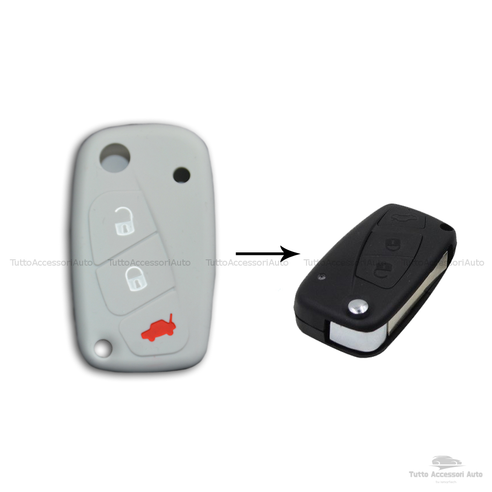 1neiSmartech Cover Colorata Protezione in Silicone Morbido per Scocca Guscio Chiave 3 Tasti Pieghevole Auto Fiat Grande Punto, Panda, Stilo, Bravo, Ducato, Ulysse (grigio)