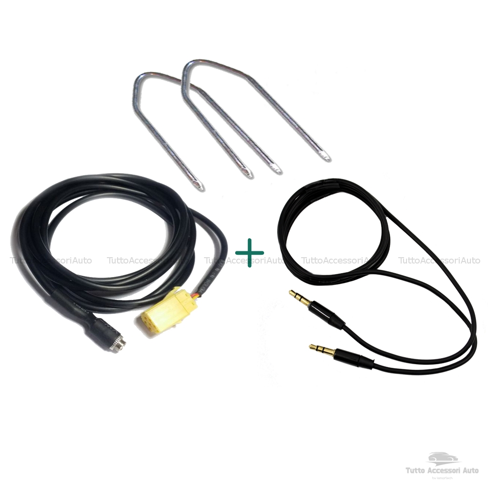 CONTENUTO DELLA CONFEZIONE n.1 cavo aux (lunghezza 150 cm) con jack femmina n.1 cavo audio rivestito in gomma (nero) (lunghezza 120 cm); n.1 kit con due chiavette per la rimozione della radio