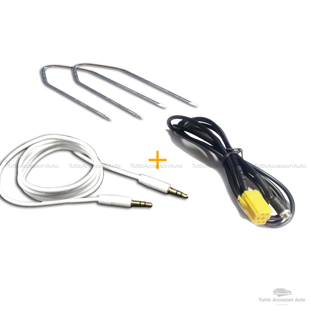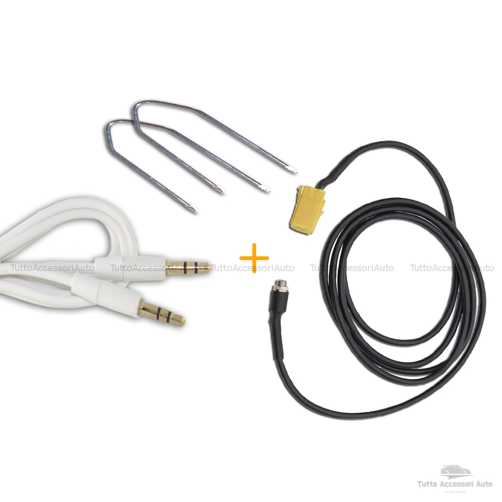 CONTENUTO DELLA CONFEZIONE n.1 cavo aux (lunghezza 150 cm) con jack femmina n.1 cavo audio rivestito in gomma (bianco) (lunghezza 120 cm); n.1 kit con due chiavette per la rimozione della radio