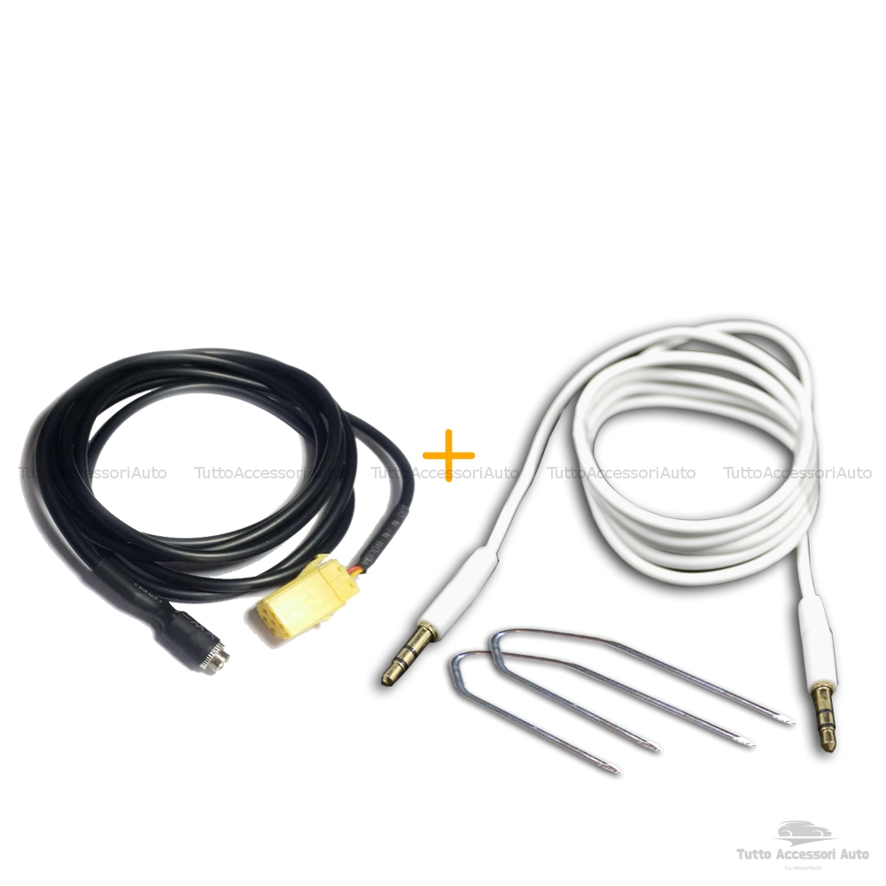 DESCRIZIONE Cavo aux con jack femmina per autoradio utilizzabile se il vostro autoradio prevede la funzione AUX, attivando la funzione CD o SRC con il CD non inserito nel lettore dell'autoradio. Il cavo aux dispone di un ingresso jack femmina e di un connettore da collegare al vostro stereo. In omaggio, nella confezione, trovate il cavo audio con doppio jack maschio da collegare al cavo aux e al vostro smartphone. Il cavo audio ha due jack dorati (3,5mm) in lega di alluminio. Il materiale che riveste la guaina (TPE), molto simile alla gomma, offre un'ottima resistenza alle torsioni ed un'efficiente funzionalità anti-groviglio