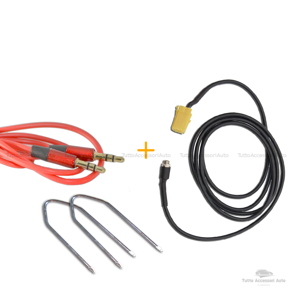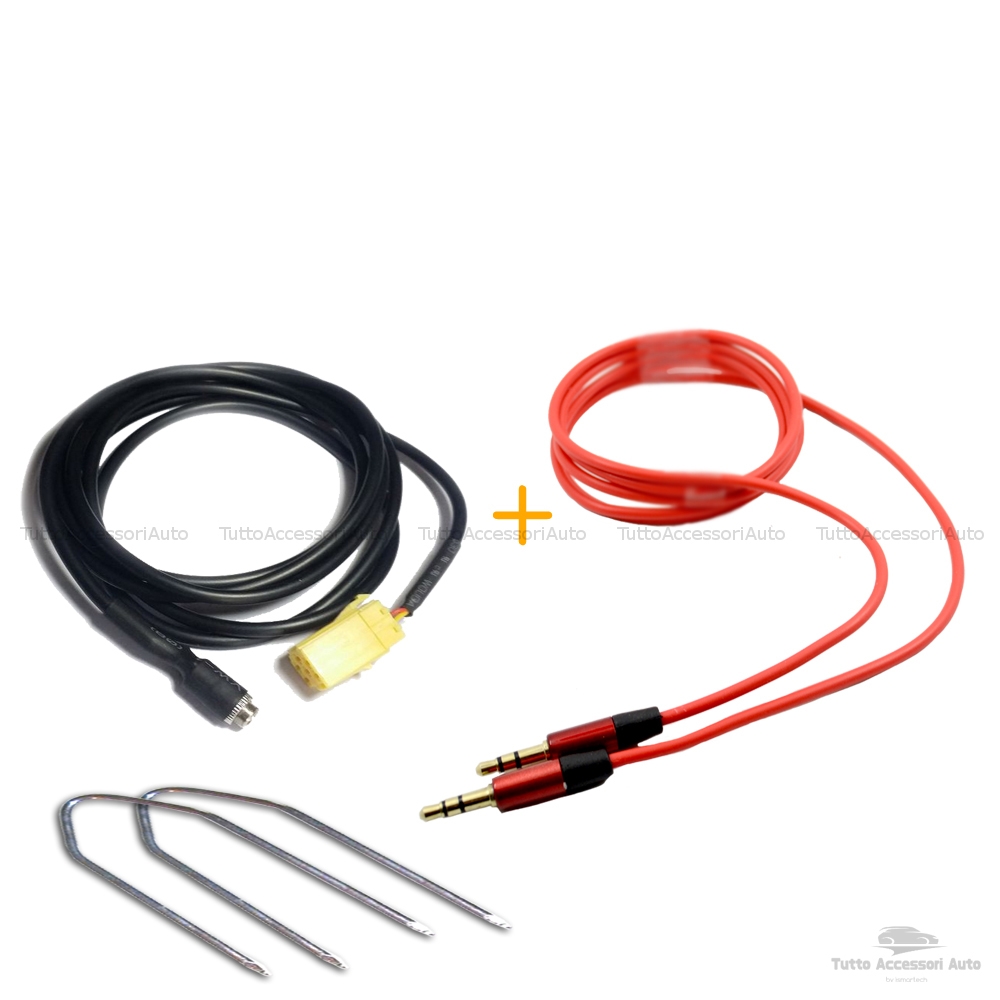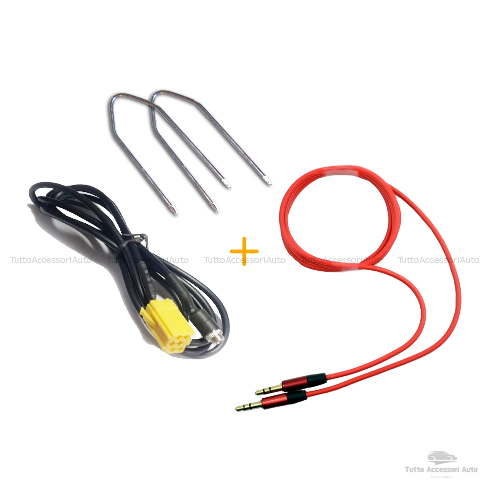 CONTENUTO DELLA CONFEZIONE n.1 cavo aux (lunghezza 150 cm) con jack femmina n.1 cavo audio rivestito in gomma (rosso) (lunghezza 120 cm); n.1 kit con due chiavette per la rimozione della radio