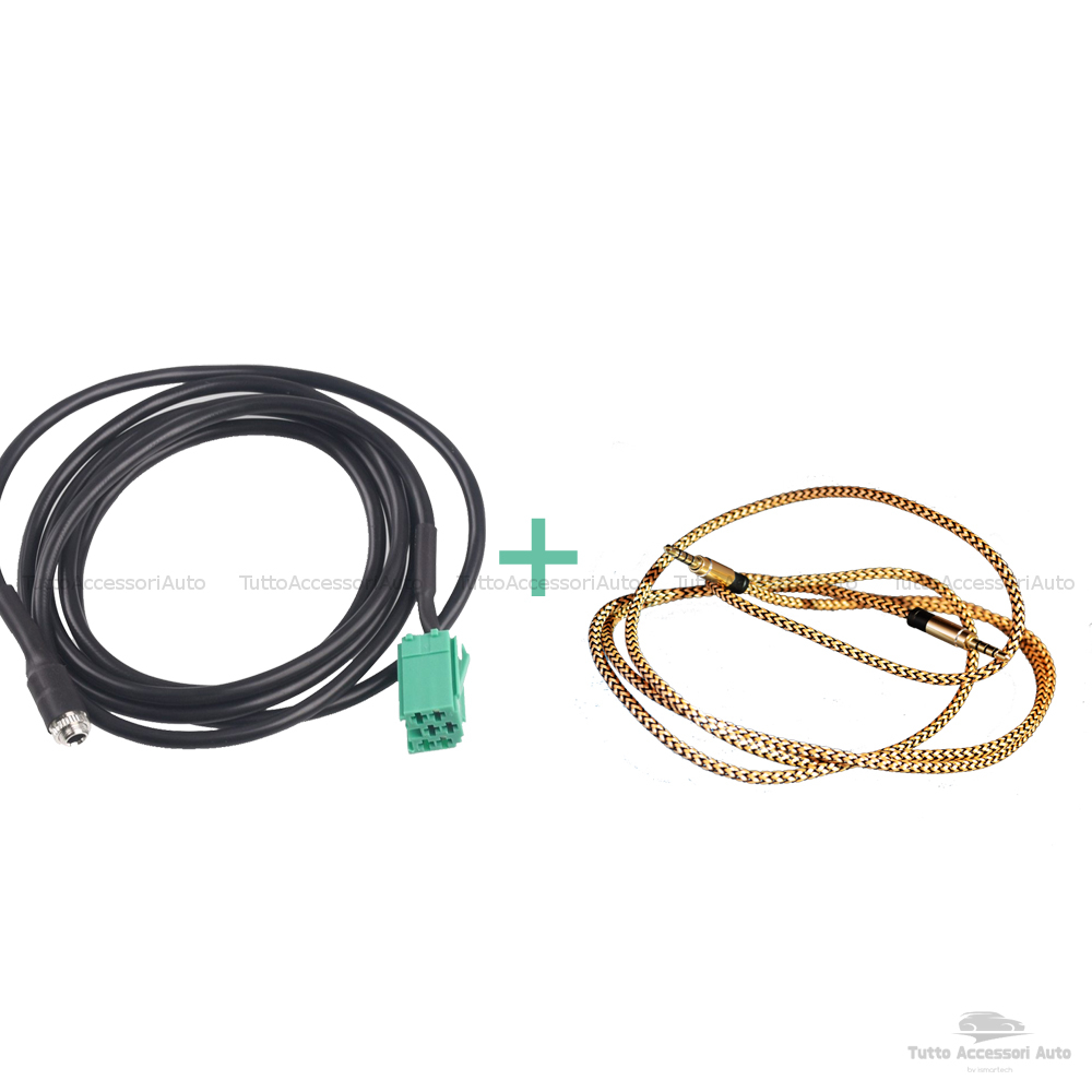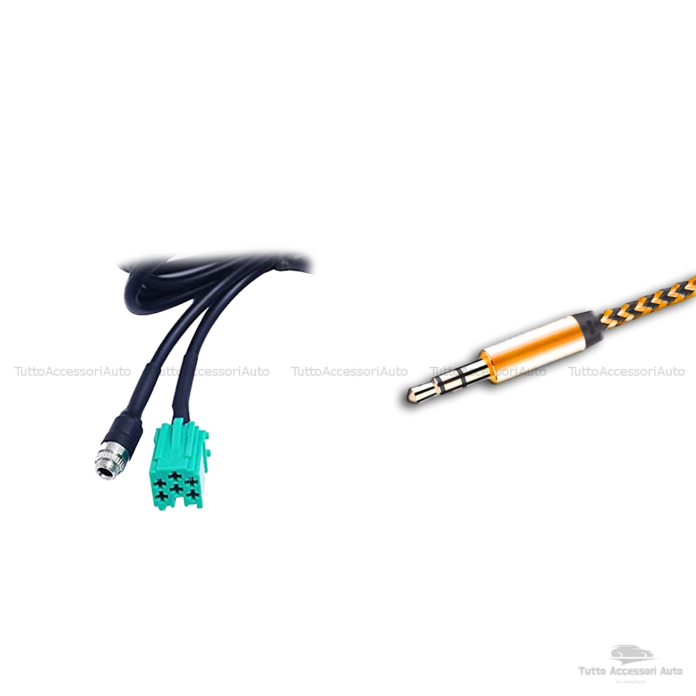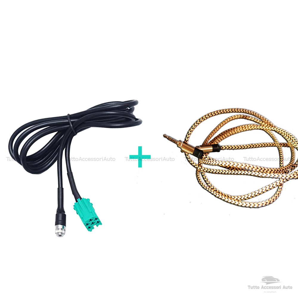 DESCRIZIONE Il cavo aux consente il collegamento di una qualsiasi sorgente audio, smartphone, iPod, iPhone o lettore mp3 all'autoradio della vostra autovettura Renault. Il cavo dispone di un jack femmina da 3,5mm e di un connettore da collegare al retro dello stereo. In omaggio il cavo Besync con n. 2 jack maschi dorati in lega di alluminio anodizzato da 3,5 mm e rivestito in nylon. La rete in nylon intrecciato che riveste la guaina offre un'ottima resistenza alle torsioni ed un'efficiente funzionalità anti groviglio. Tale rivestimento rende il cavo ultra resistente nel tempo