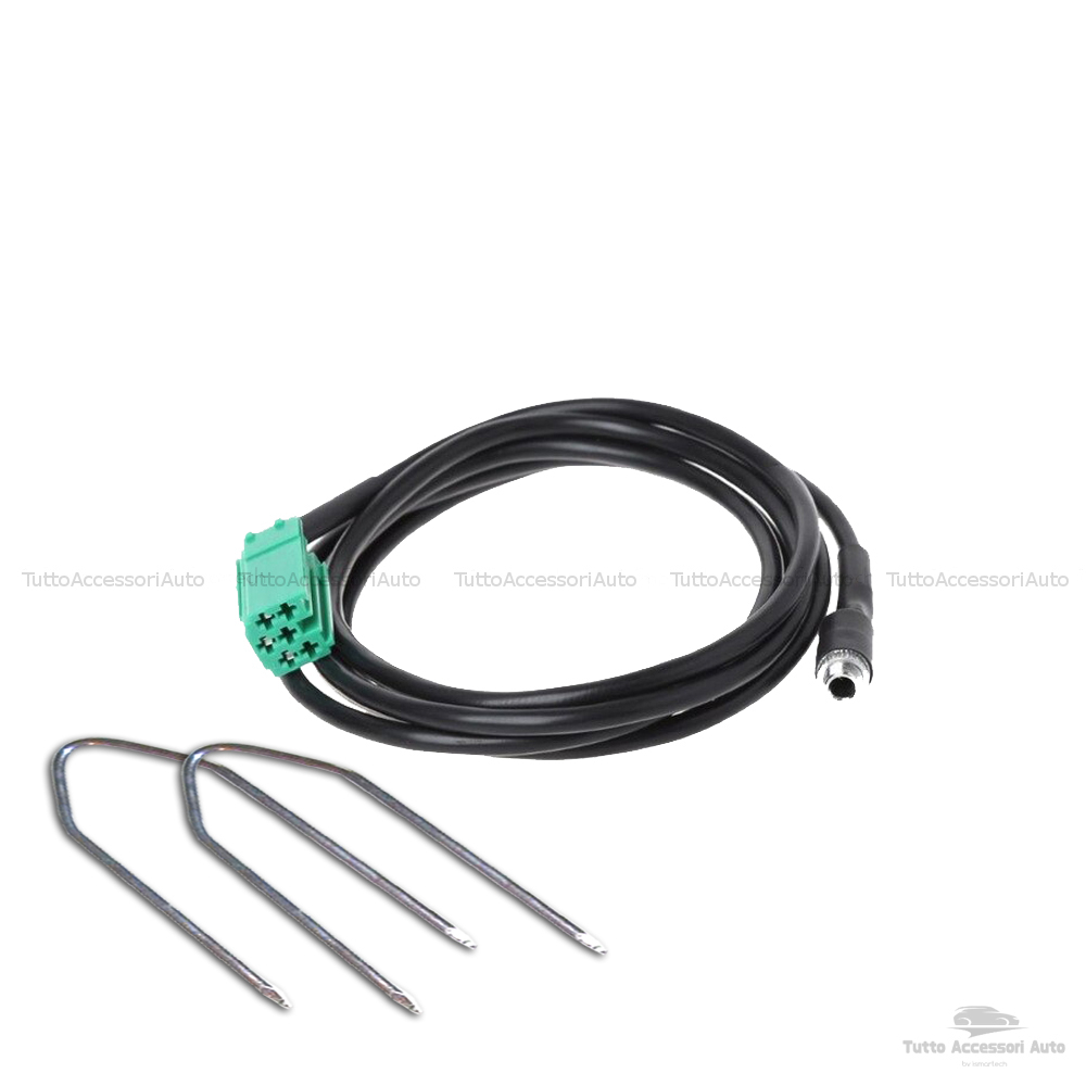 CARATTERISTICHE Il cavo è dotato di connettore (colore verde) e va collegato insieme a quello di colore giallo che trovate nel retro dell'autoradio e non a quello rosso. Prima di acquistare il cavo, controllate che sull'autoradio di serie Renault ci sia scritto UPDATE LIST. La scritta la trovate in basso a destra
