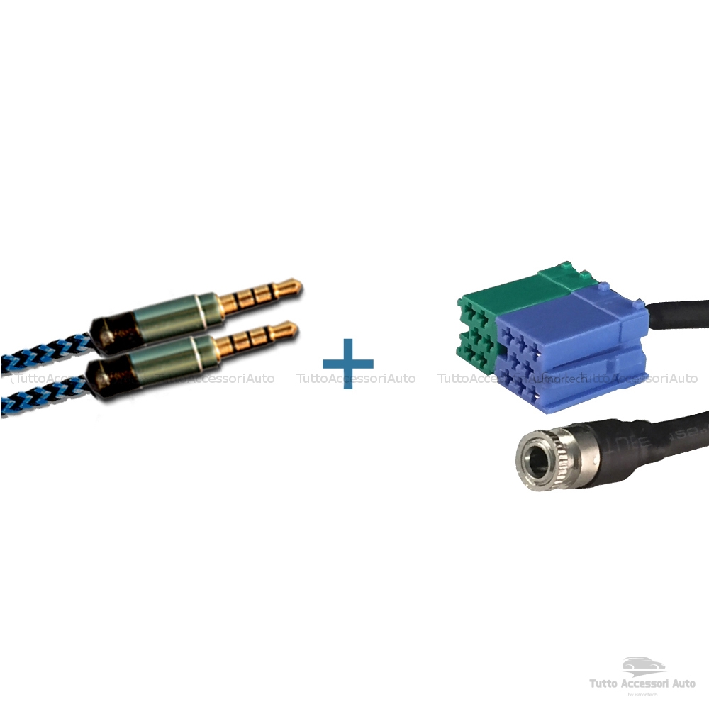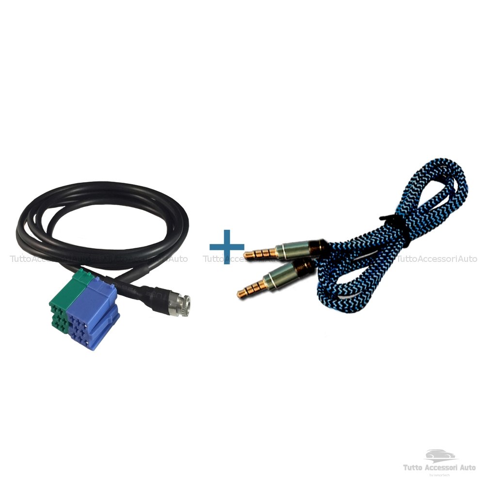 CONTENUTO DELLA CONFEZIONE n.1 cavo aux (lunghezza 150 cm) con jack femmina per autoradio di serie montate su auto Fiat Bravo (produzione dal 2007 in poi); n.1 cavo audio Besync con n. 2 jack maschi dorati in lega di alluminio da 3,5 mm e rivestito in nylon (blu); lunghezza 100 cm