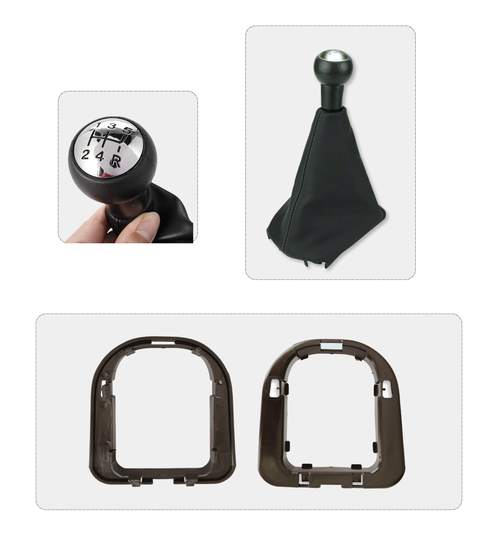 Il materiale della cuffia è morbido, confortevole e resistente. Ha una eccellente impermeabilità alla polvere. Rende la guida più confortevole e consente cambi di marcia più veloci e fluidi. La ghiera di ritenzione è in materiale abs ben rifinito. L'adattatore della leva cambio è in plastica resistente e perfettamente compatibile