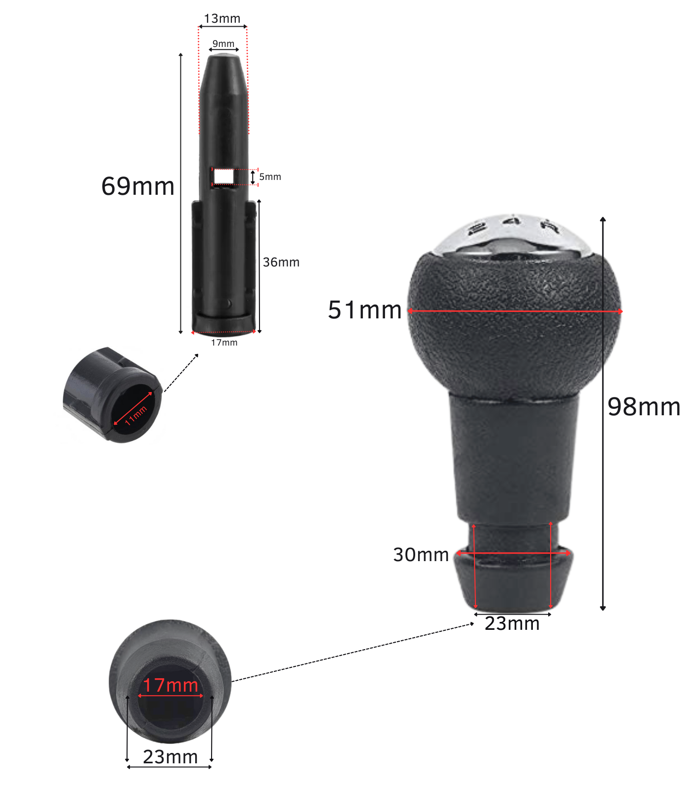 Pomello e adattatore per leva cambio 5 marce e retromarcia compatibile con Peugeot e Citroen