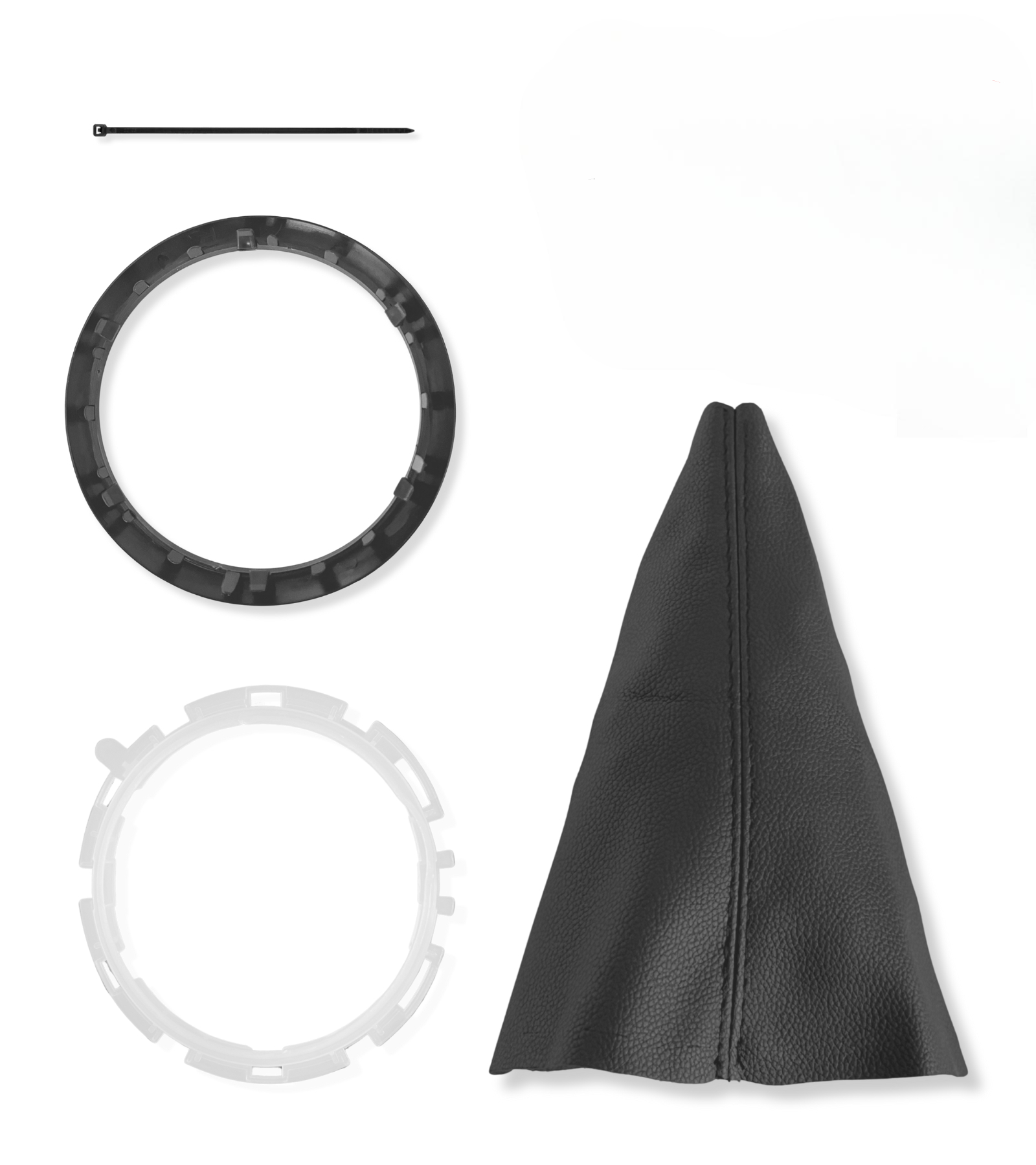 La cuffia per leva cambio è progettata specificamente per Citroen C3 dal 2003 al 2009. Include cuffia in similpelle nera (OEM 1606400280), ghiera interna (OEM 7589T8), cornice esterna nera (OEM 7589V0),fascetta in nylon per un'installazione completa e senza problemi.