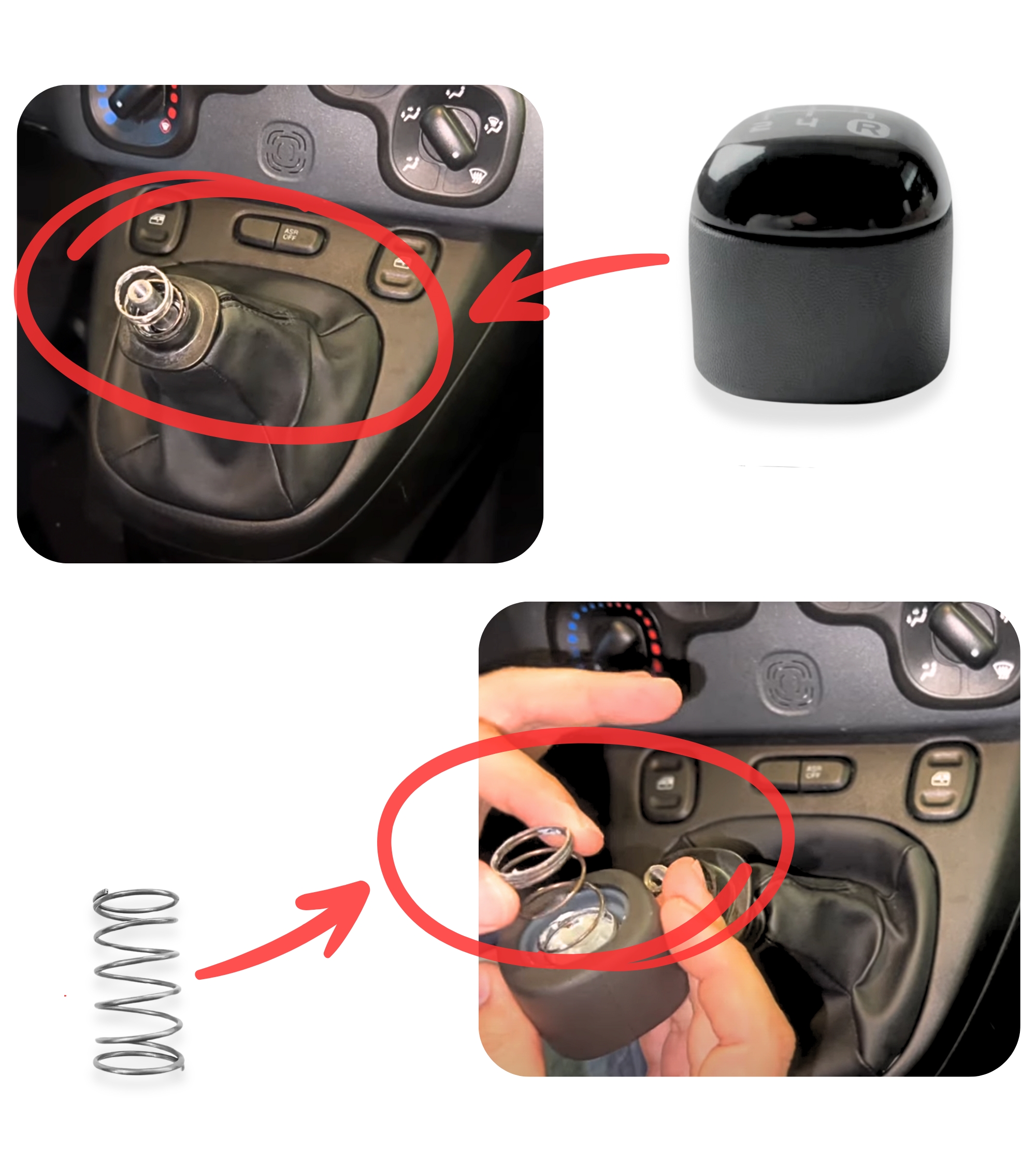 La molla di ritorno è specifica per Pomello e Cuffia con cambio manuale ed è compatibile con Fiat Panda 312, 319 dal 2012. Pomello non incluso nella confezione.