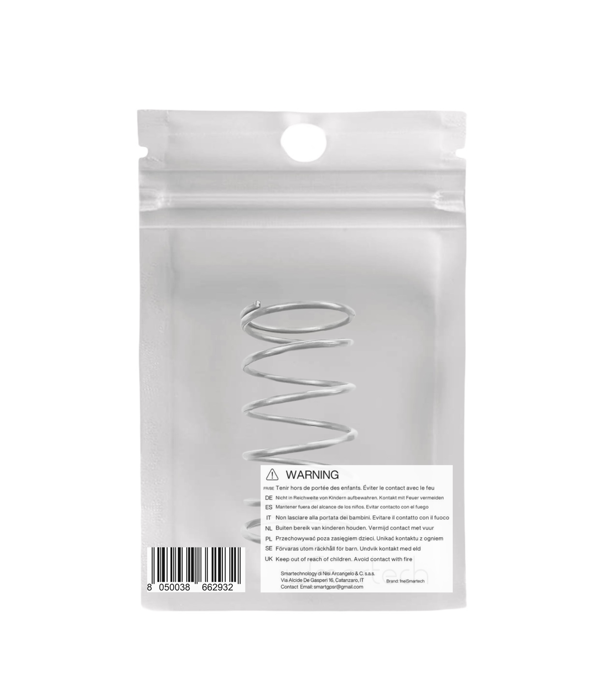 La molla è fatta di acciaio per resistere alla compressione ripetuta e garantire una lunga durata. L'acciaio usato è trattato per resistere alla corrosione e all'usura meccanica. La molla è progettata per durare nel tempo