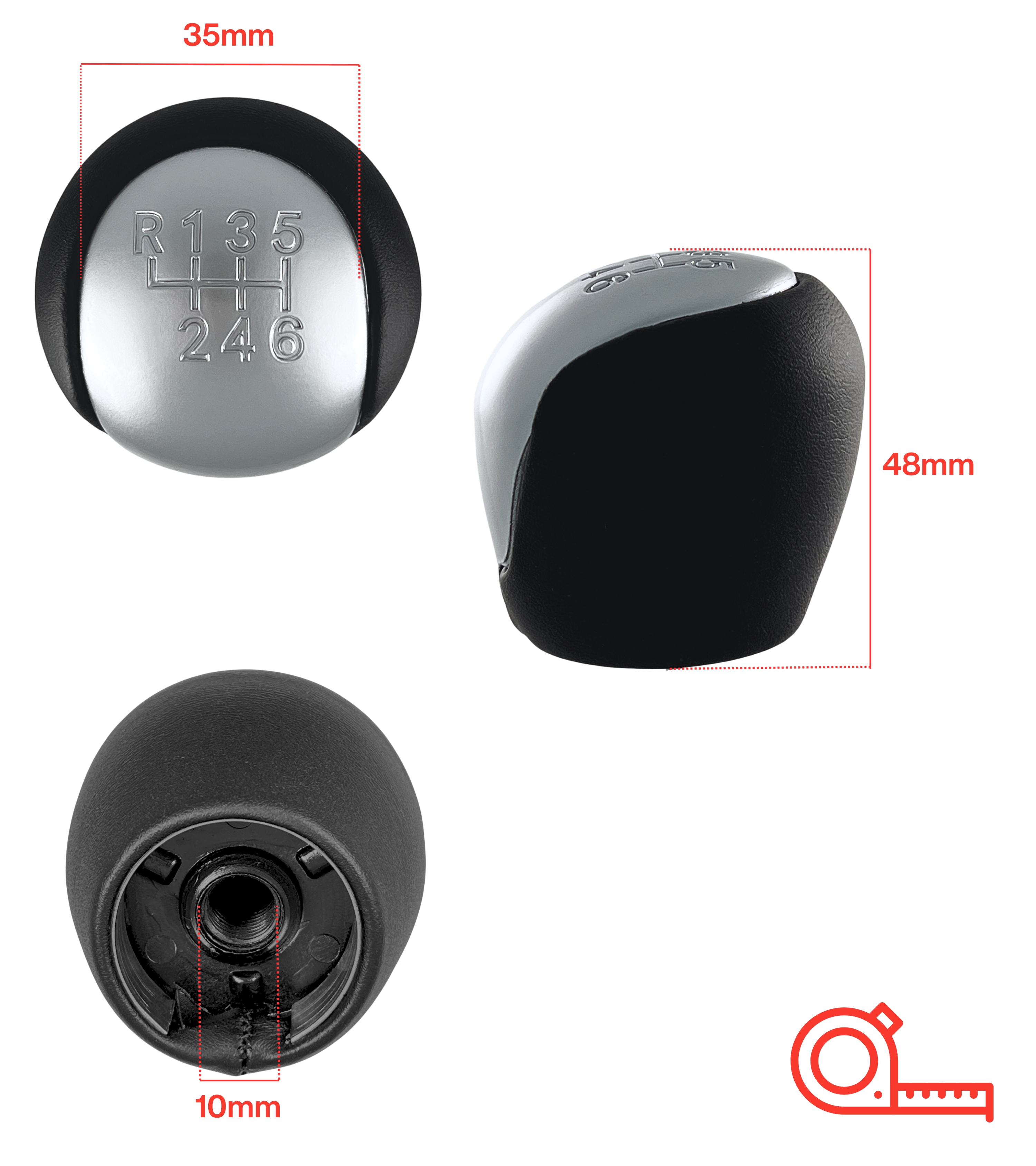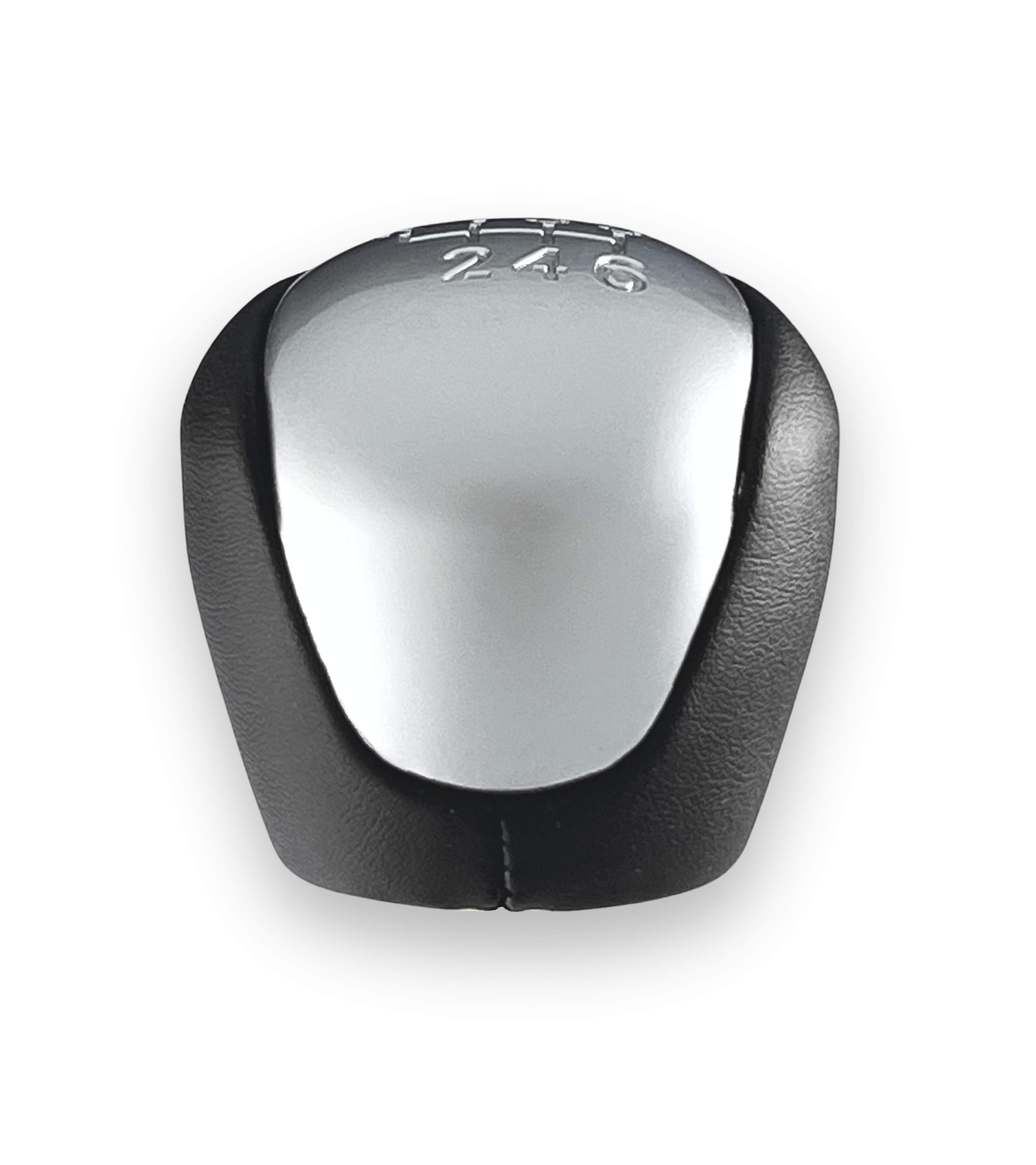 L'impugnatura è realizzata in materiale sintetico di alta qualità, resistente ai frequenti cambi di marcia, mentre la placca presenta una raffinata finitura argento satinata che aggiunge un tocco di eleganza senza riflessi indesiderati. Inoltre, il design garantisce una leggibilità impeccabile e riduce al minimo le impronte, migliorando l’estetica degli interni della tua auto.