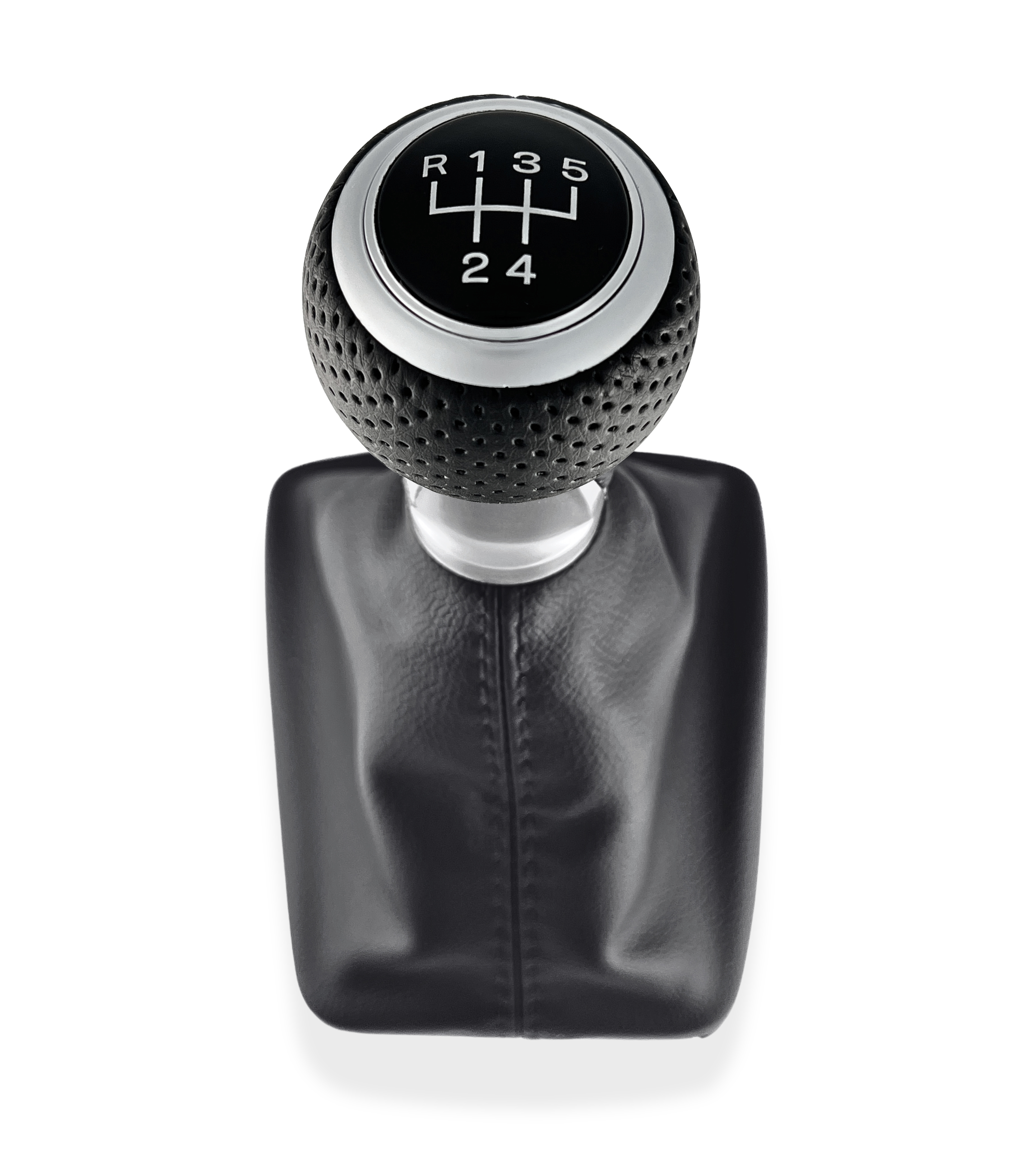 Il pomello è realizzato in materiale sintetico morbido, con rifiniture satinate in colore argento, progettato per offrire una presa confortevole e una lunga durata nel tempo. La placca lucida di colore nero presenta i numeri delle marce in argento, assicurando un design elegante senza riflessi indesiderati. La superficie della placca è progettata per garantire un’ottima leggibilità e ridurre al minimo le impronte, mantenendo un aspetto sempre pulito e raffinato. Configurazione marce: pomello per cambio manuale a 5 marce, con retromarcia posizionata a sinistra e verso l’alto.