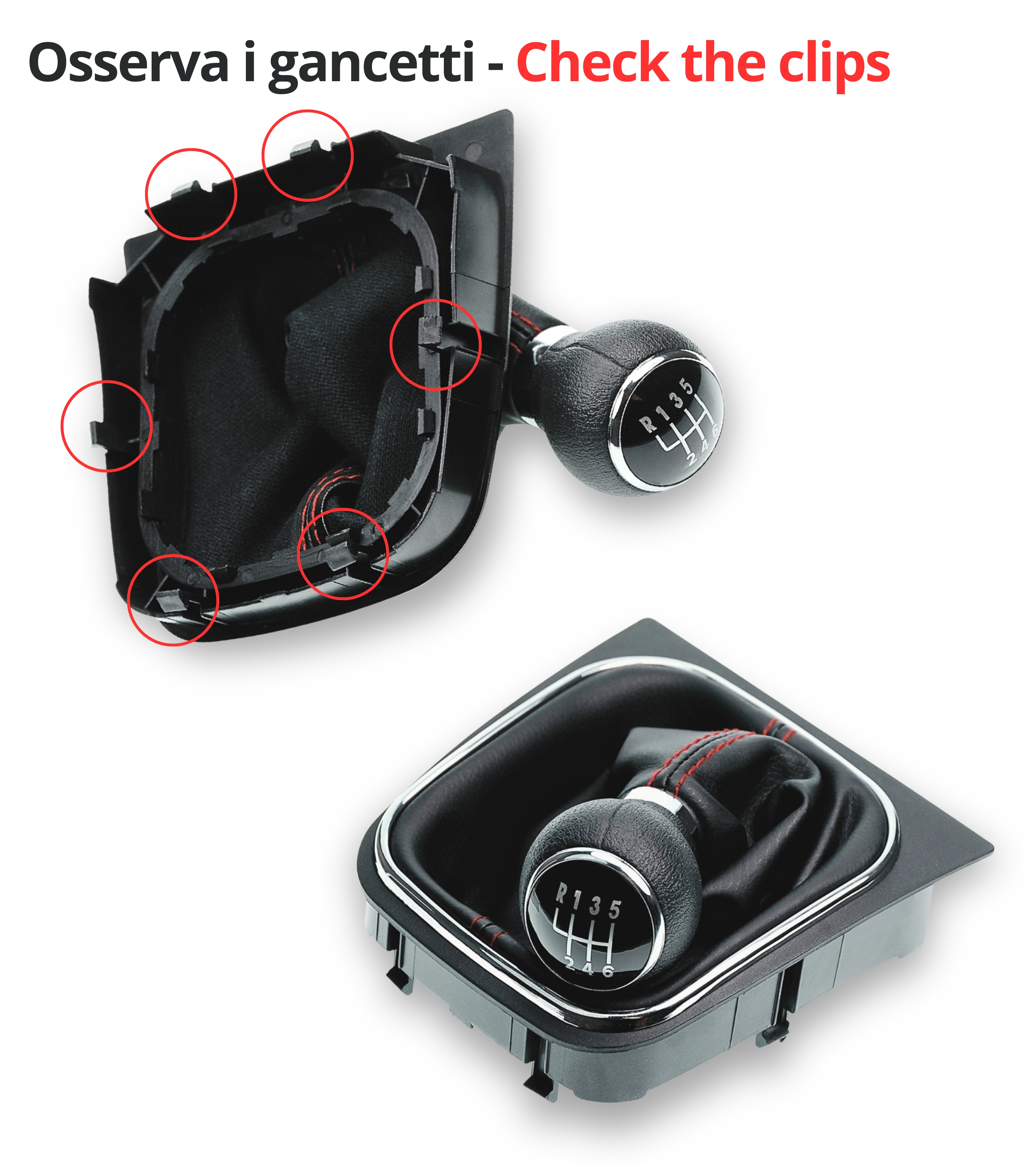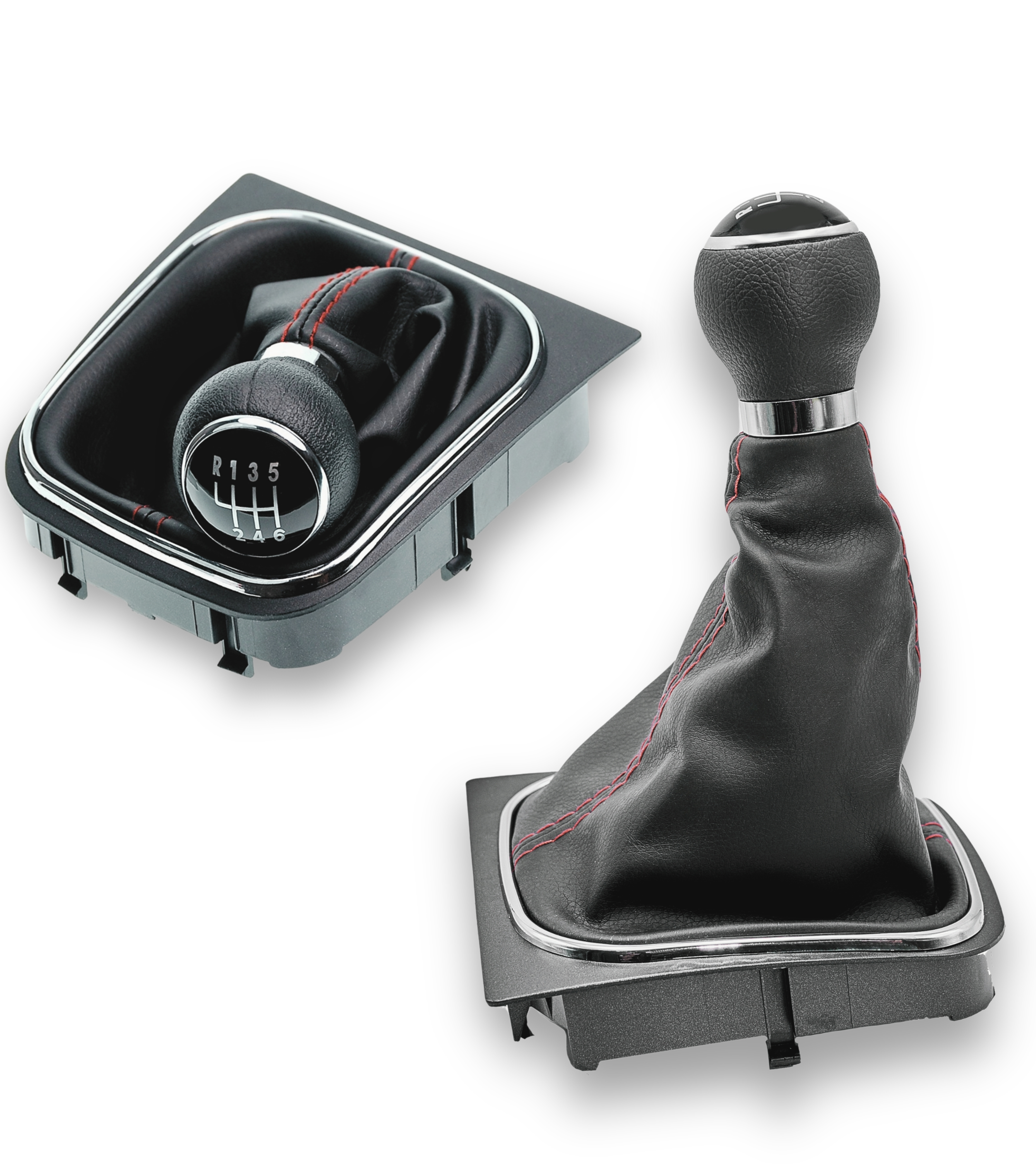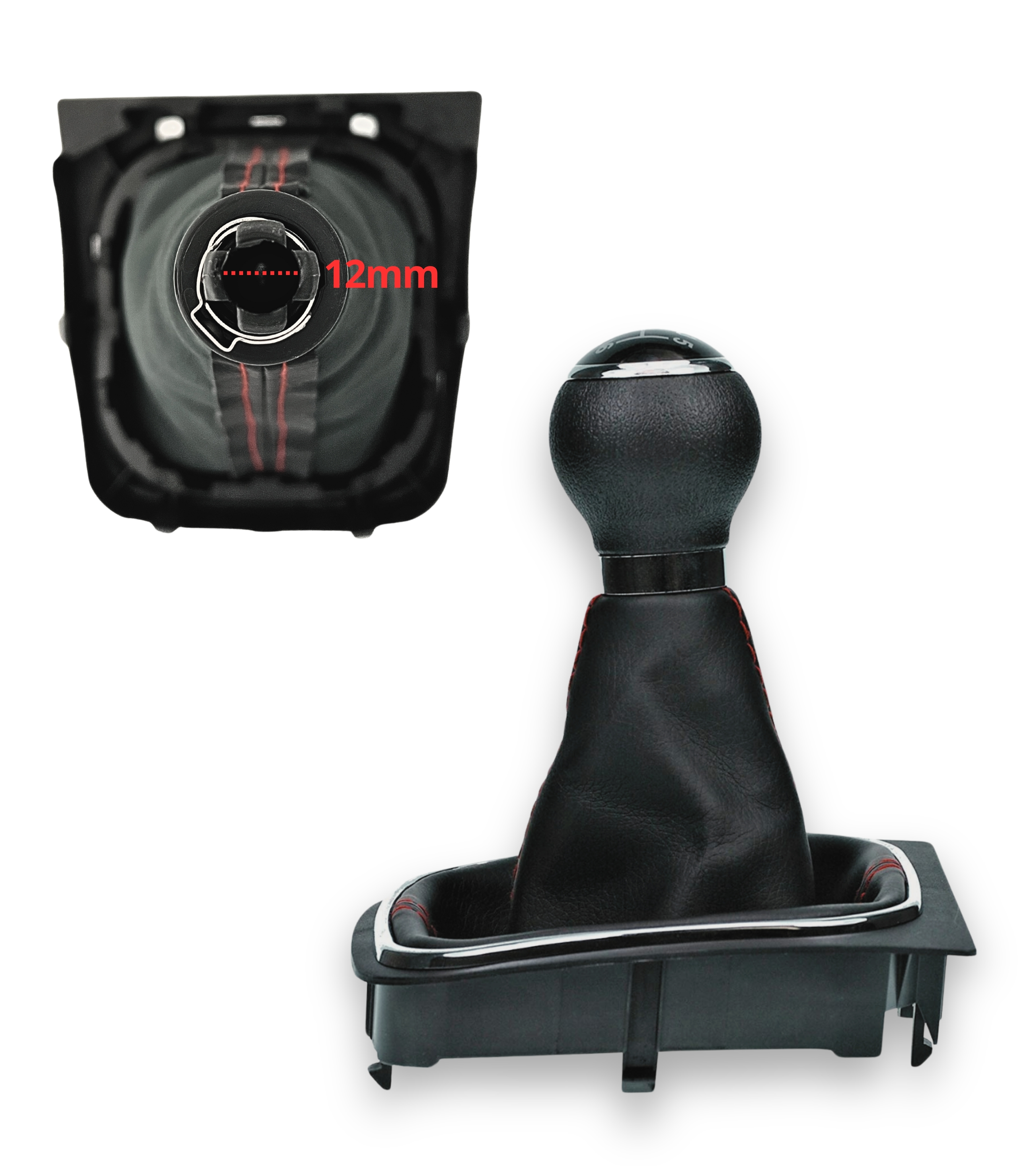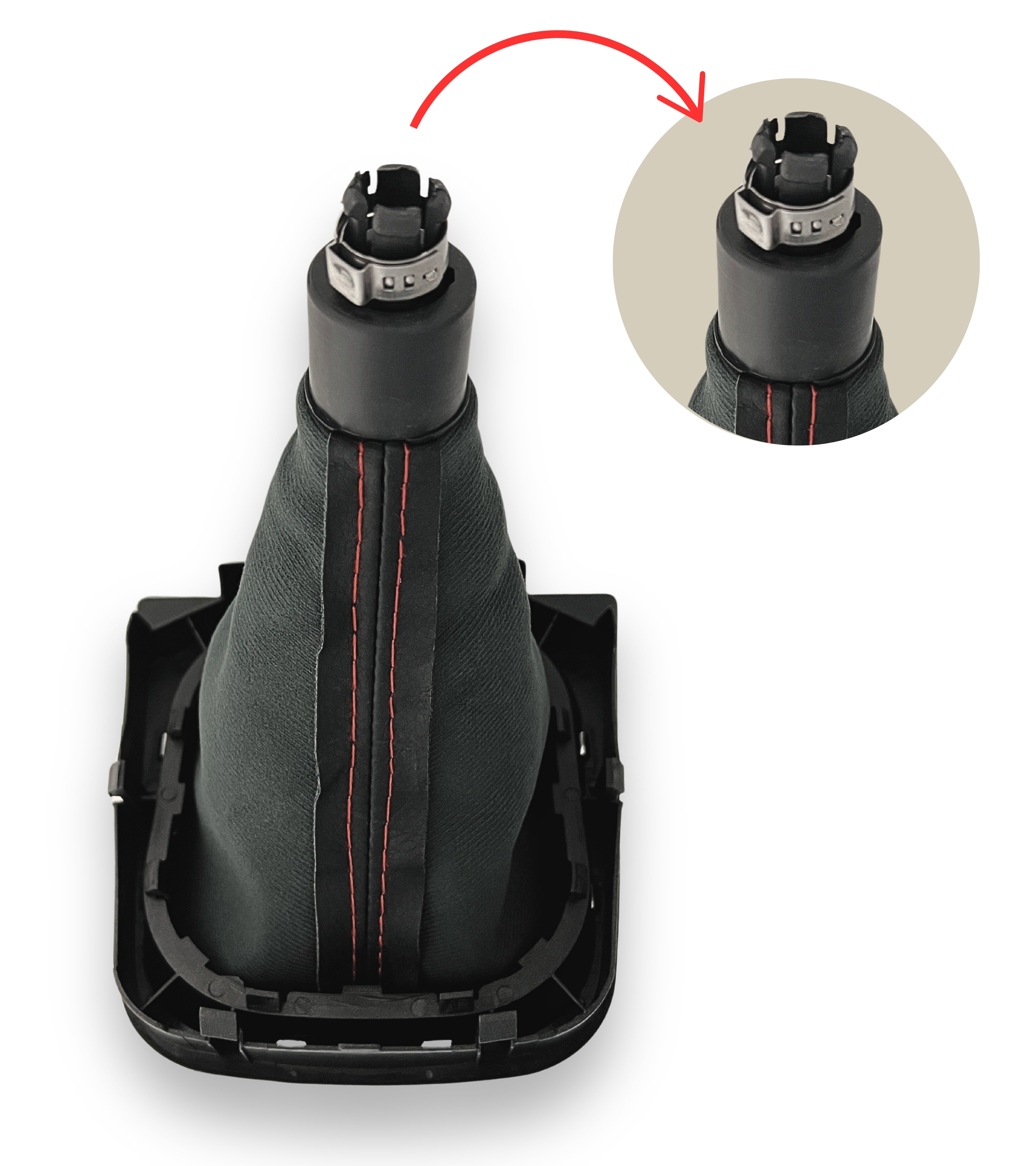 La cuffia compatibile con Volkswagen è realizzata in materiale sintetico resistente agli strappi e ai frequenti cambi di marcia. Le cuciture rosse aggiungono un tocco elegante e sportivo, migliorando l’estetica degli interni. La cuffia include una cornice interna premontata, garantendo una perfetta stabilità e un'installazione semplice.