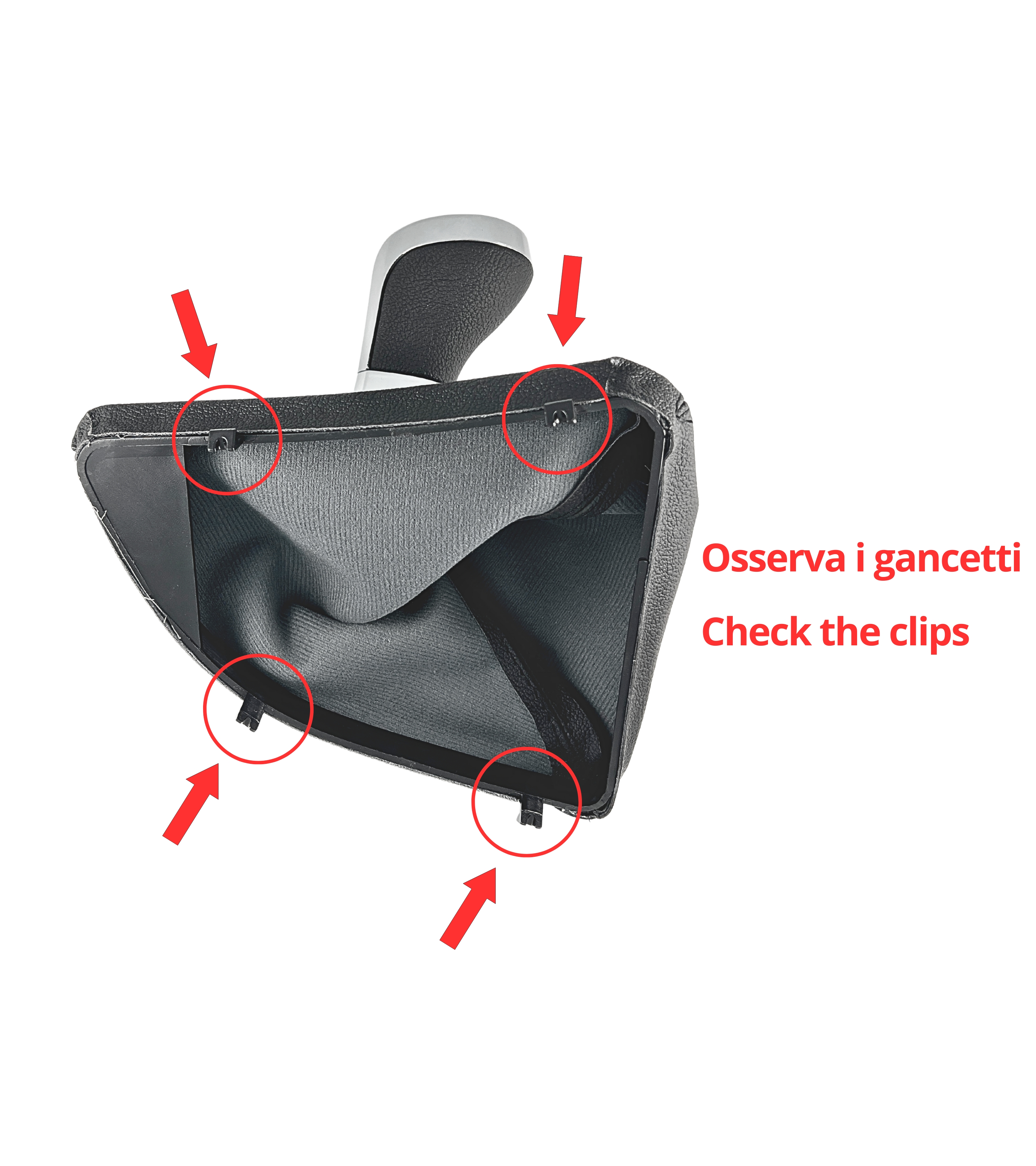 La cornice interna è provvista di 4 linguette di fissaggio che si incastrano alla base per garantire un montaggio stabile. Prima di acquistare, verifica attentamente la forma ed i gancetti della cornice interna. Esistono diverse versioni di questo componente e quella in vendita è esattamente quella mostrata nelle immagini della galleria. Controlla con attenzione la forma e il sistema di aggancio per assicurarti che sia compatibile con la tua auto. Se hai dubbi, ti consigliamo di confrontare le foto con il pezzo già installato sulla tua vettura.