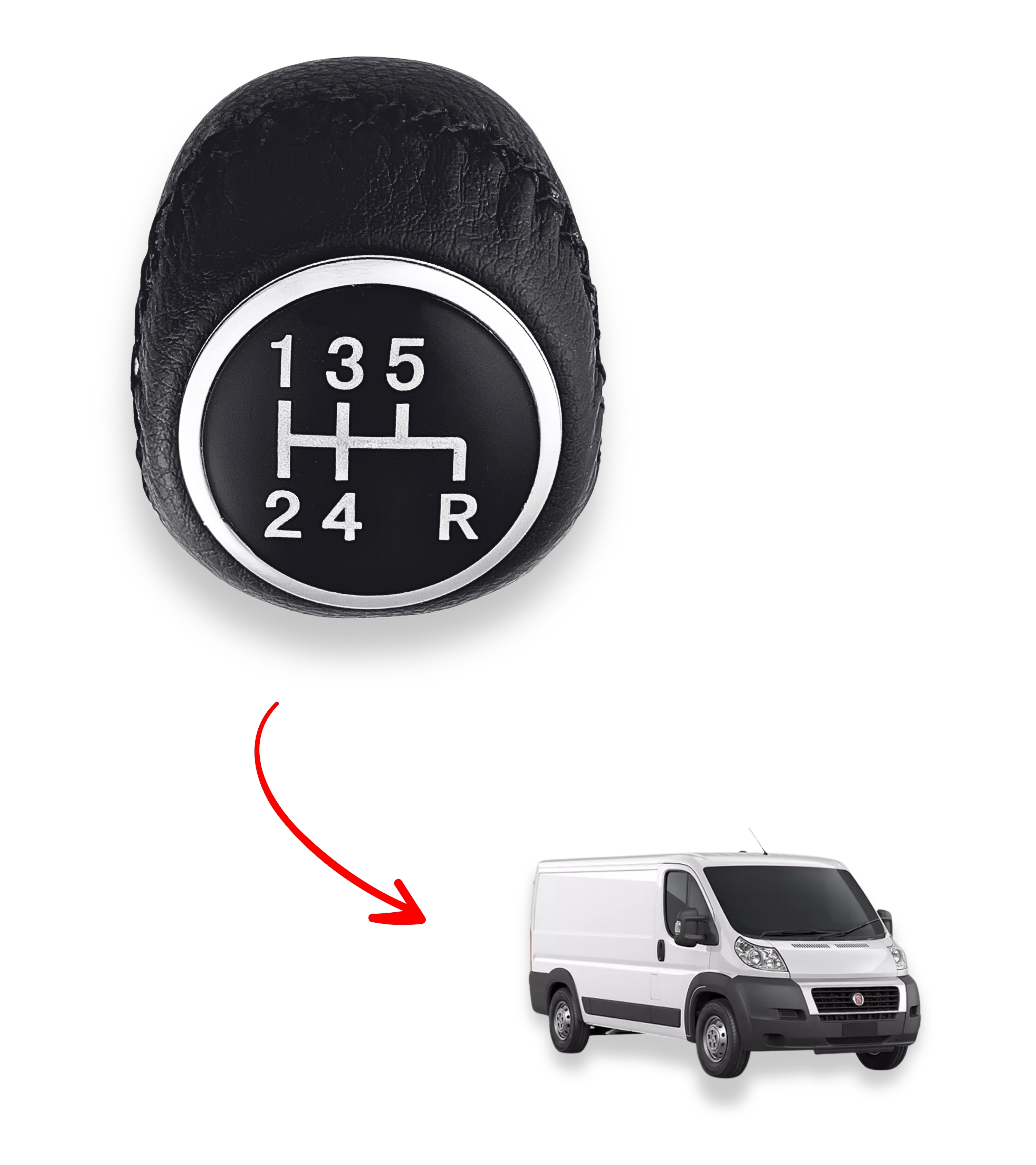 Pomello leva cambio manuale 5 marce, ricambio compatibile con Fiat Ducato 2002-2014. Prima dell’acquisto, verifica attentamente la compatibilità confrontando le immagini del prodotto con il tuo cambio.