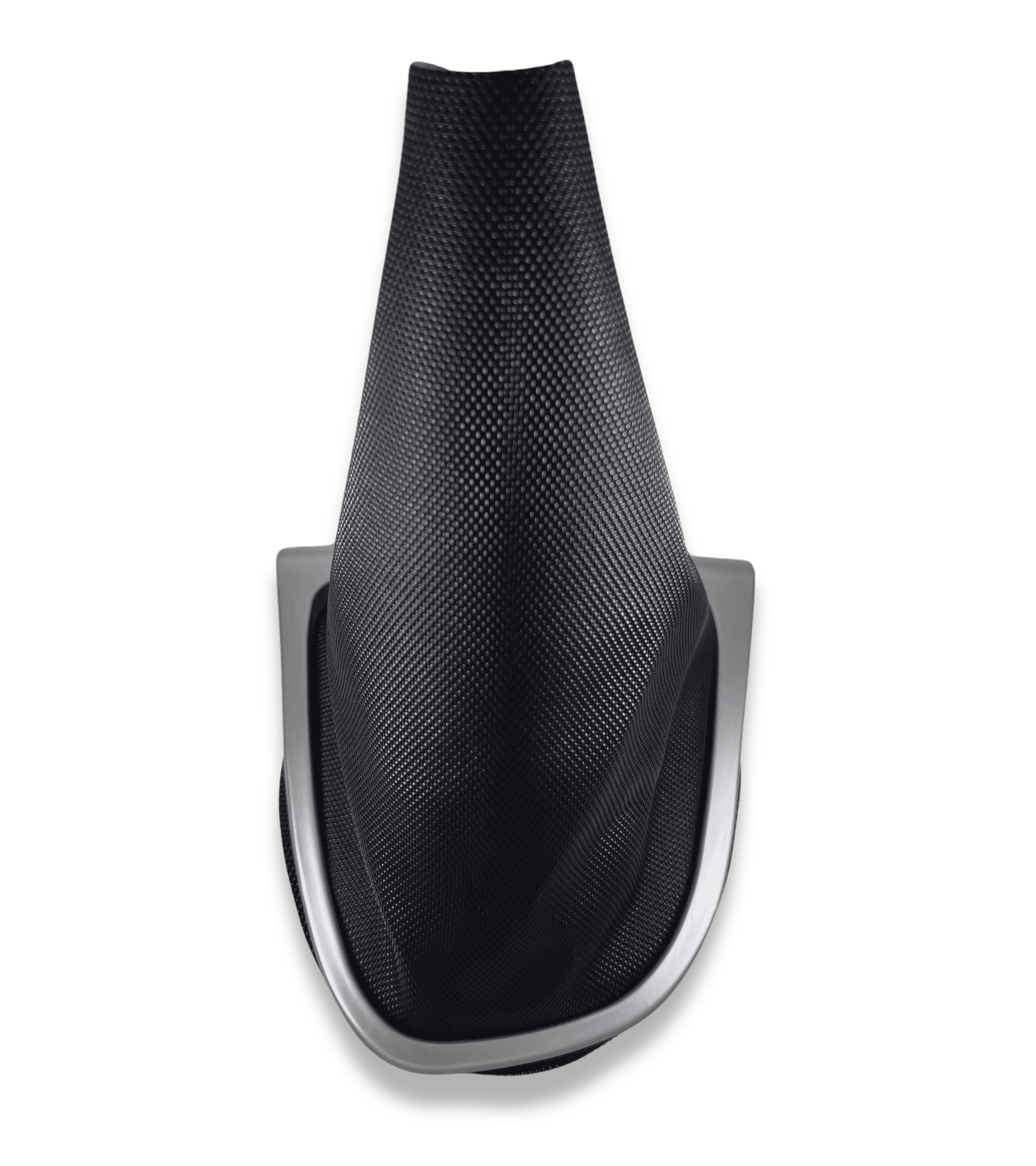 ? Cuffia in materiale sintetico nero con trama a nido d'ape, dal design sportivo ed elegante.