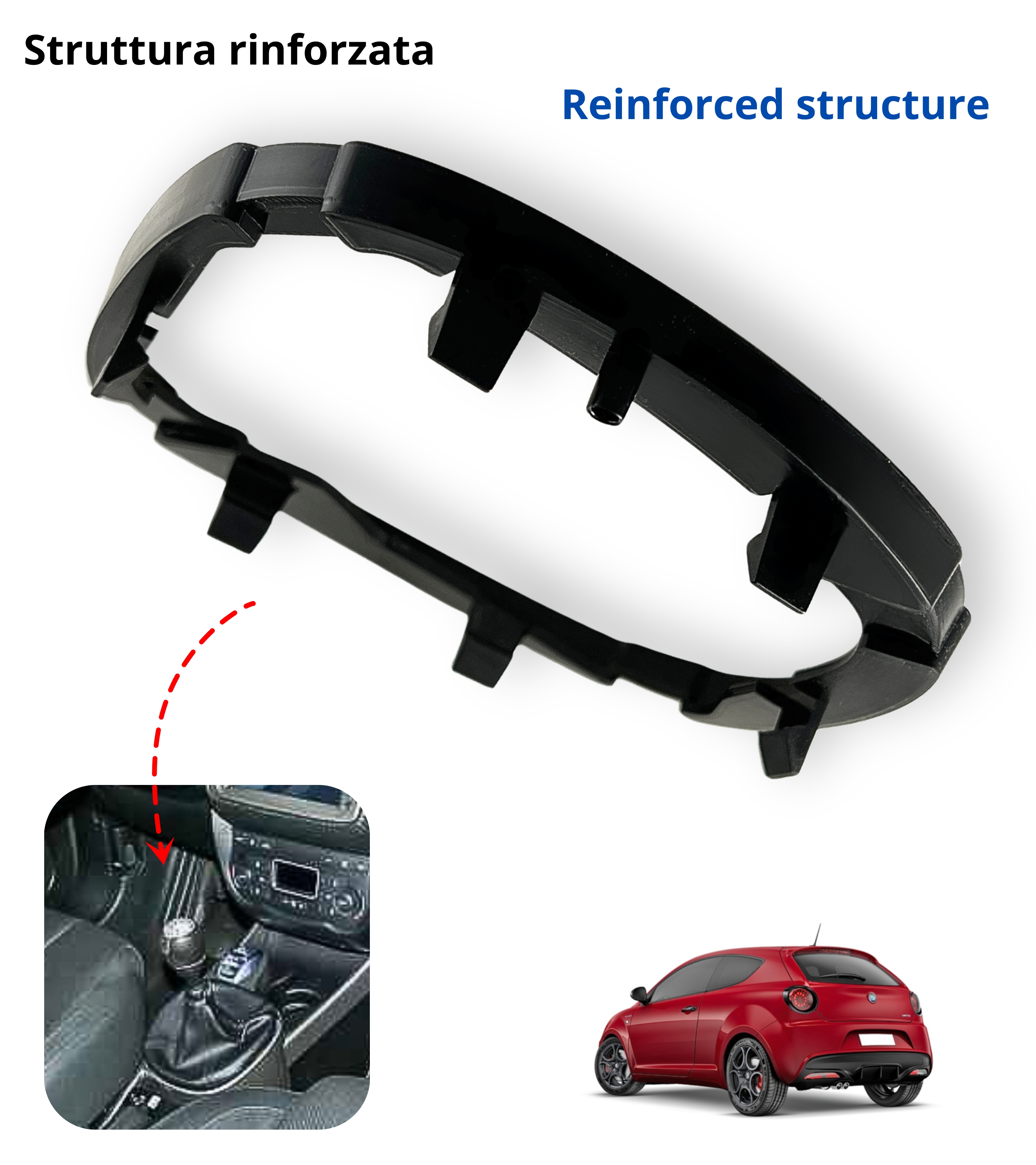 Prima dell’acquisto, verifica con attenzione le immagini della galleria per confrontare la forma della ghiera e i ganci di fissaggio. L’articolo in vendita è compatibile solo con cuffia e leva cambio MiTo versione manuale.