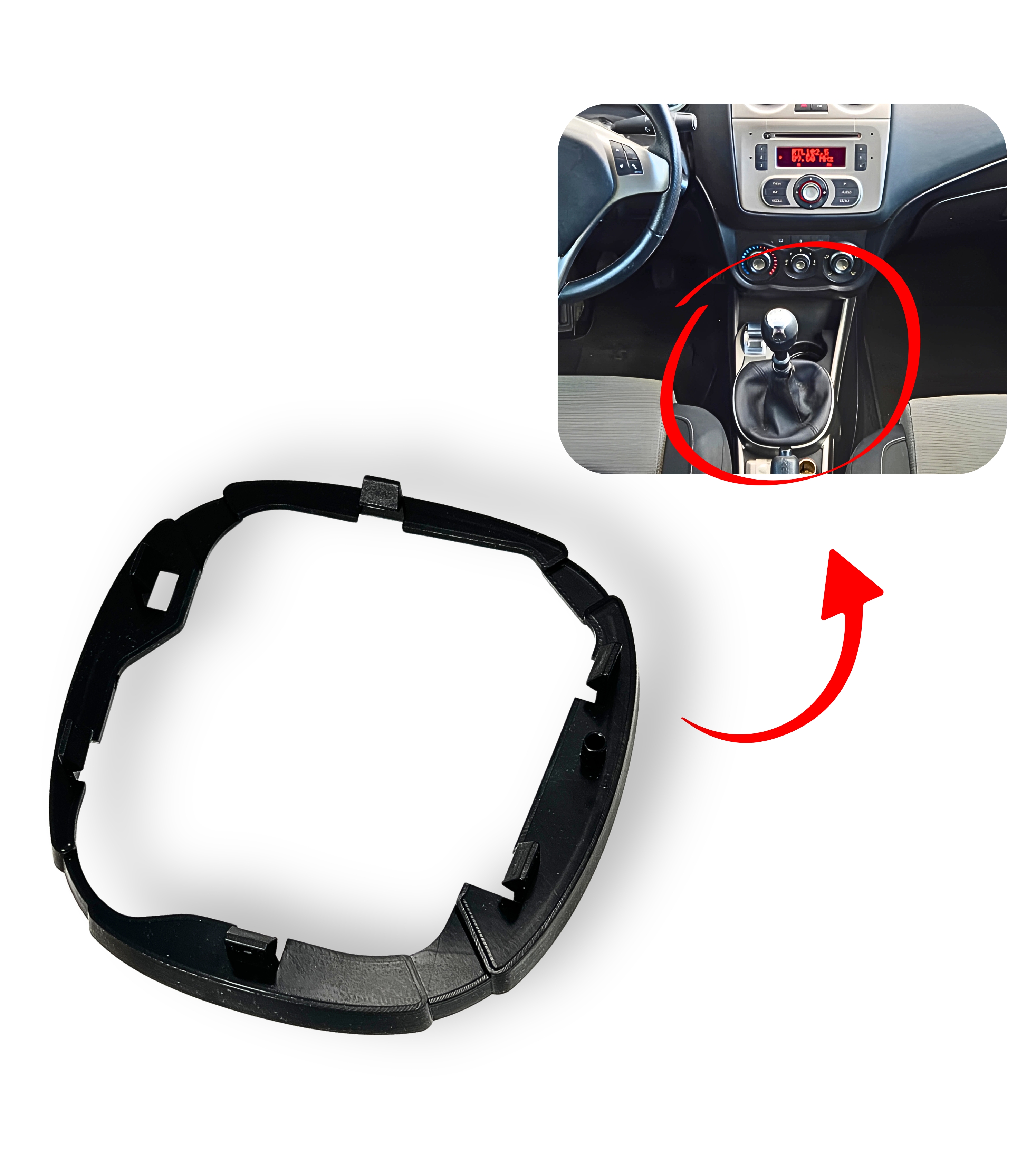 Ghiera di ritenzione, telaio interno o cornice interna, compatibile con Alfa Romeo MiTo dal 2008. Un componente fondamentale per il corretto fissaggio della cuffia alla base della leva cambio manuale.