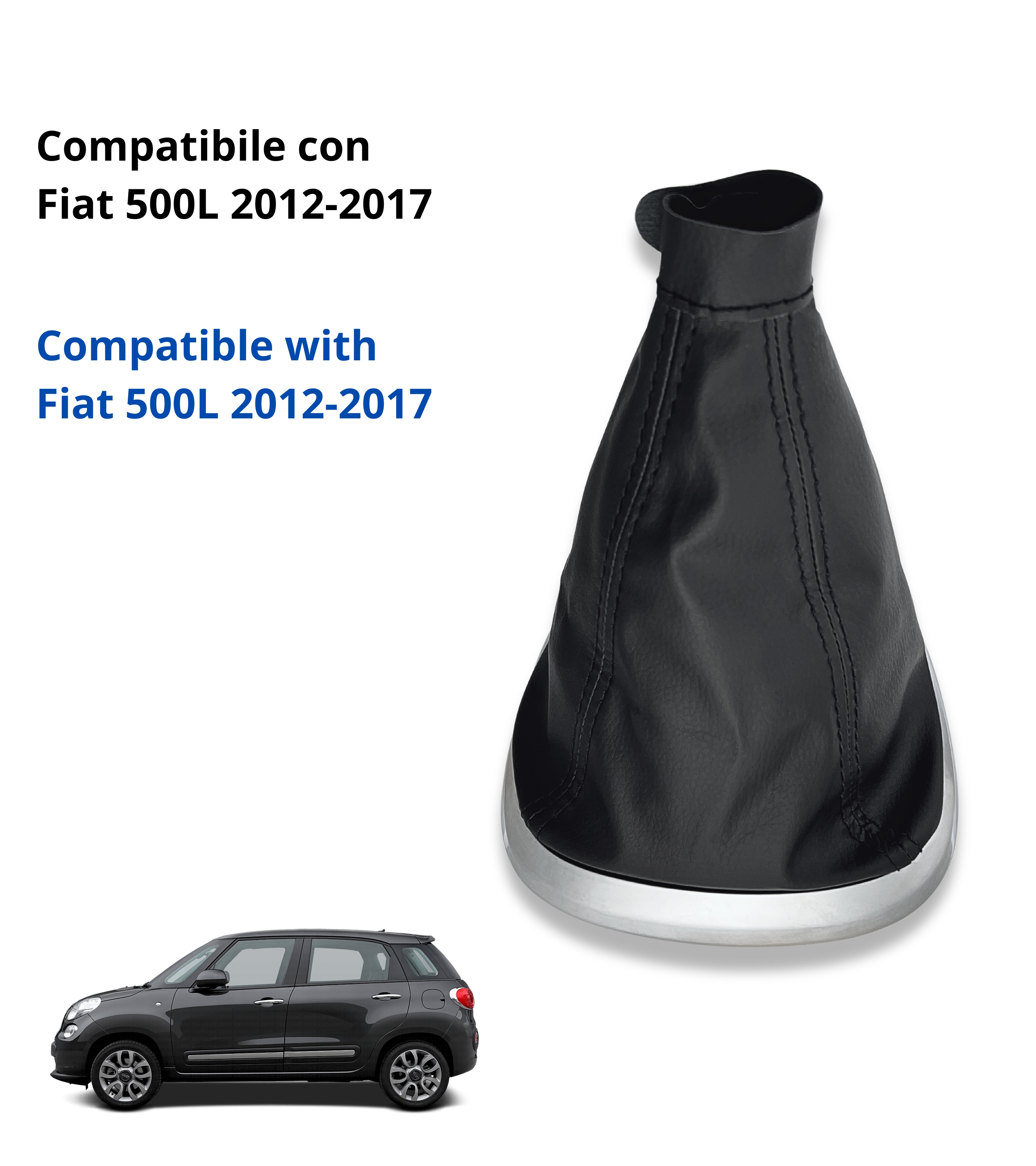 Kit completo composto da cuffia per leva cambio, cornice esterna color argento satinato e ghiera di ritenzione (telaio interno), compatibile con Fiat 500L prodotti dal 2012 al 2017. Un ricambio aftermarket pensato per chi desidera sostituire componenti danneggiati o usurati senza rinunciare allo stile e alla funzionalità.