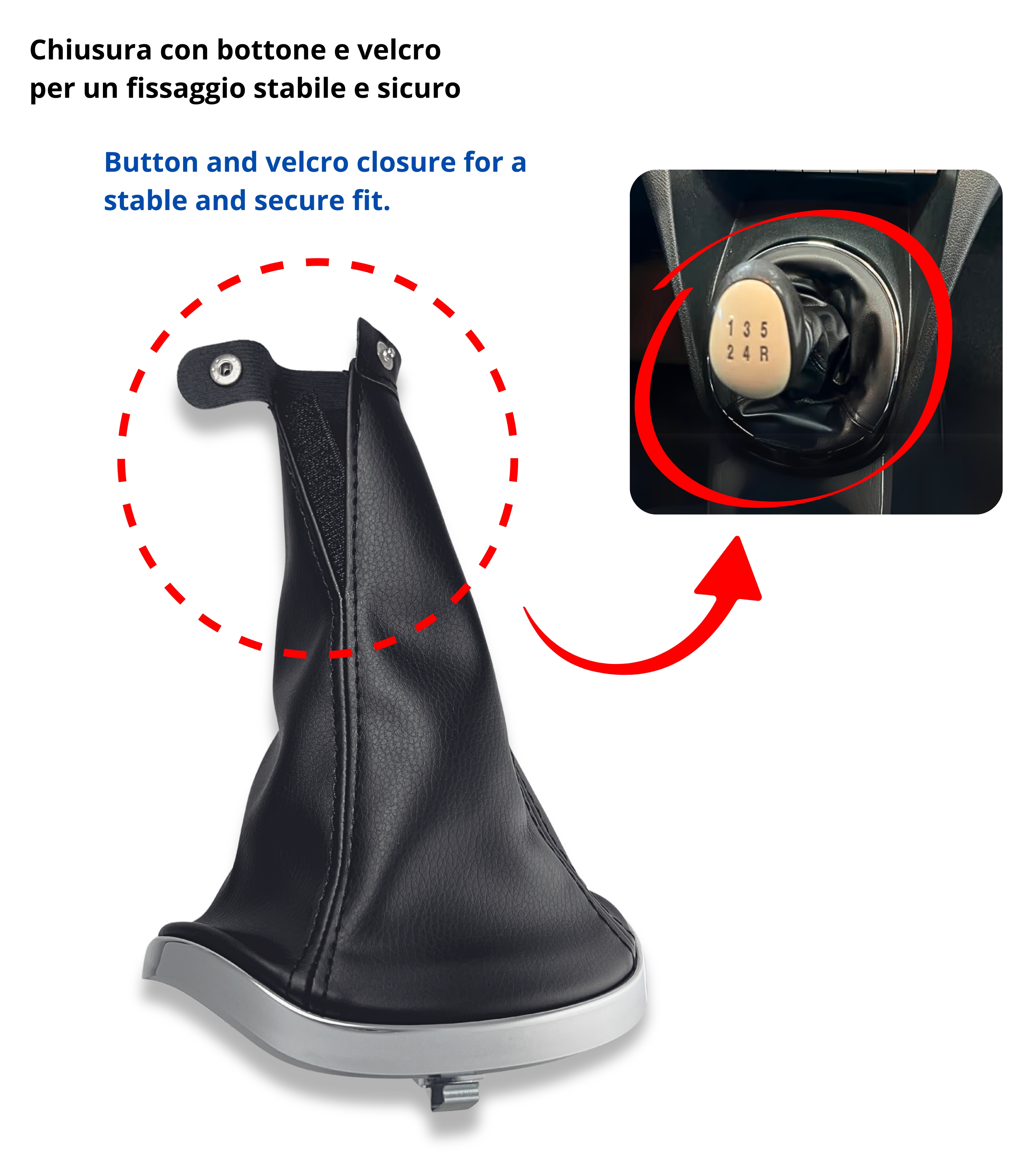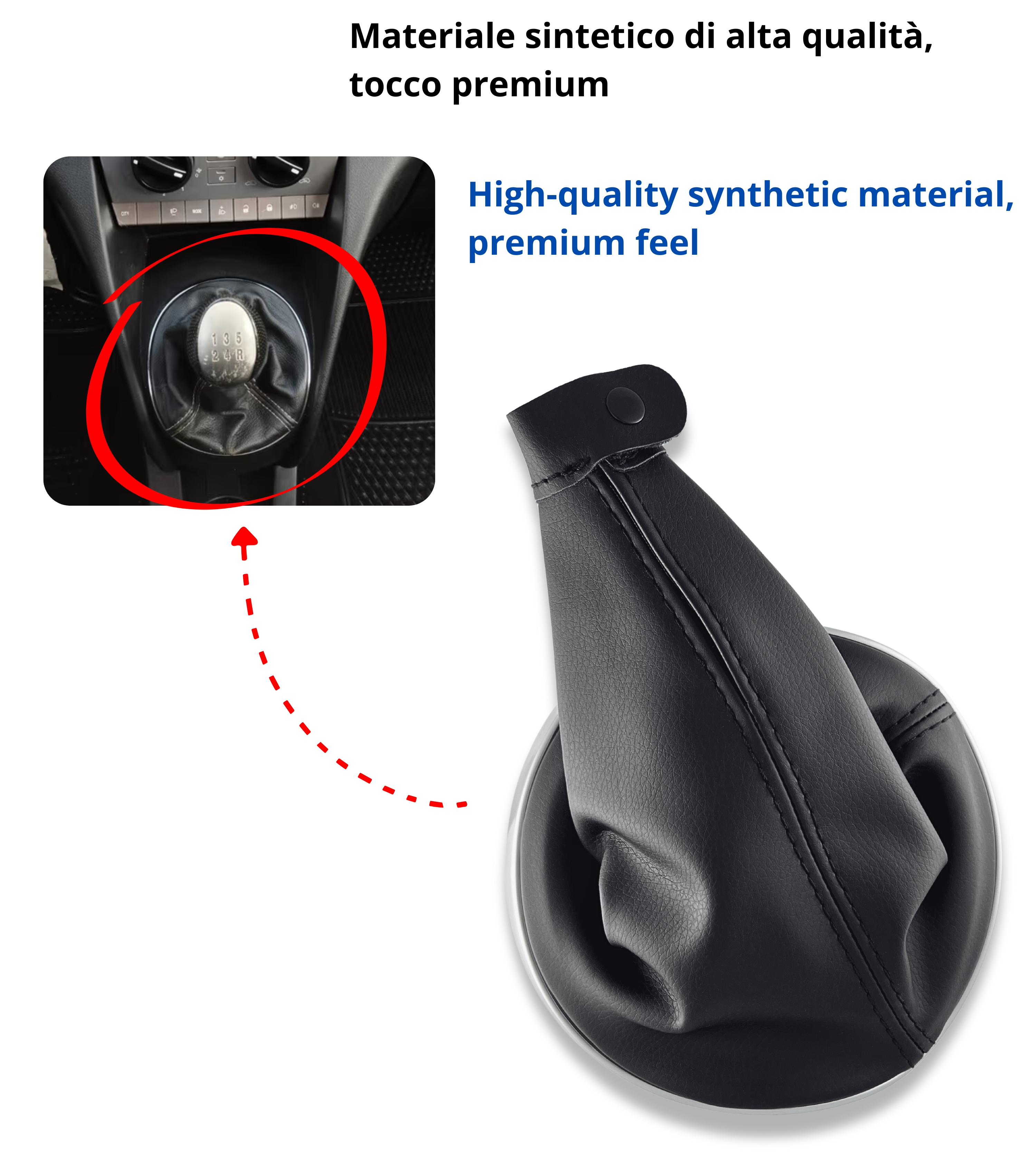 1 x Cuffia nera per leva cambio con cuciture nere