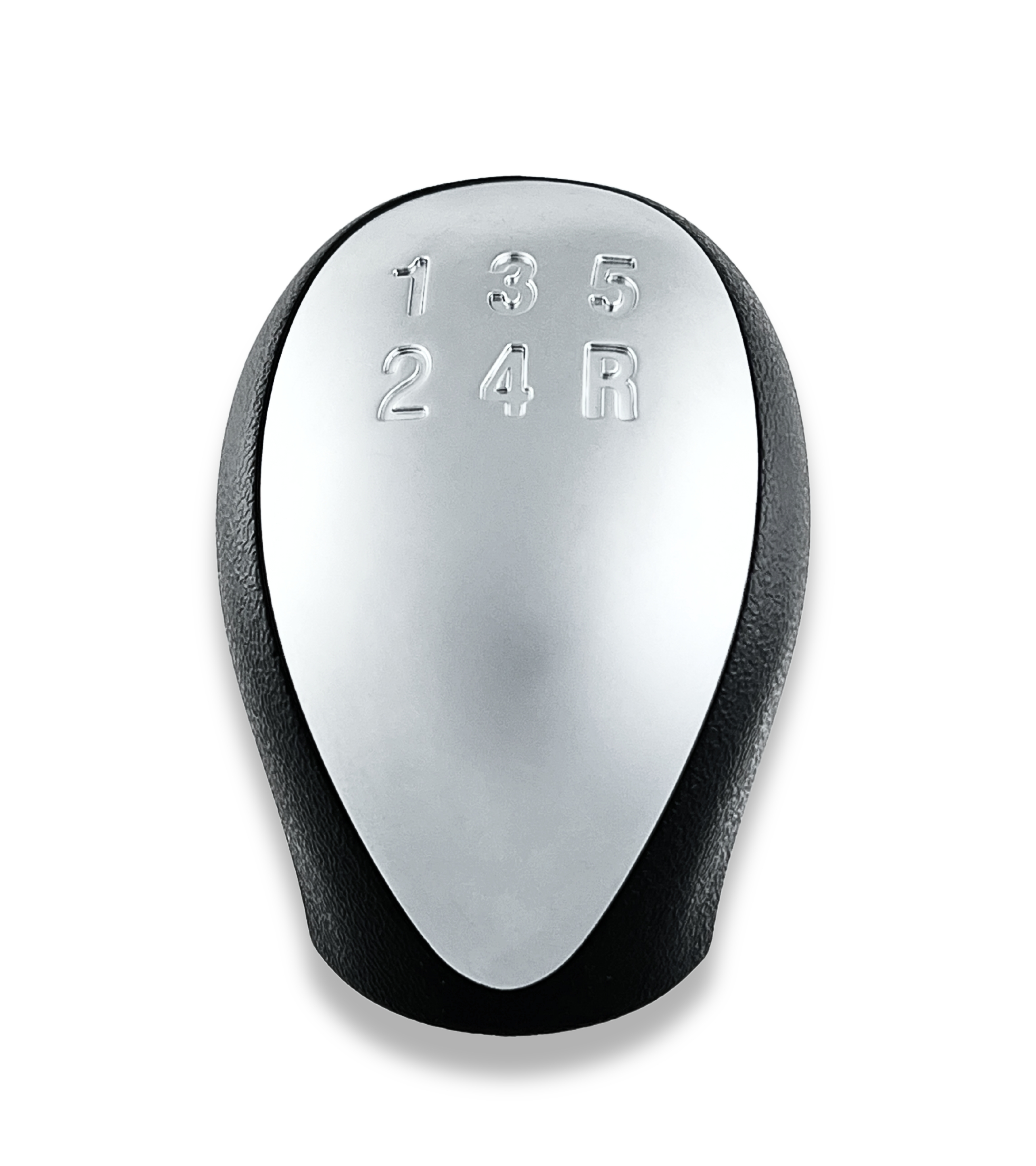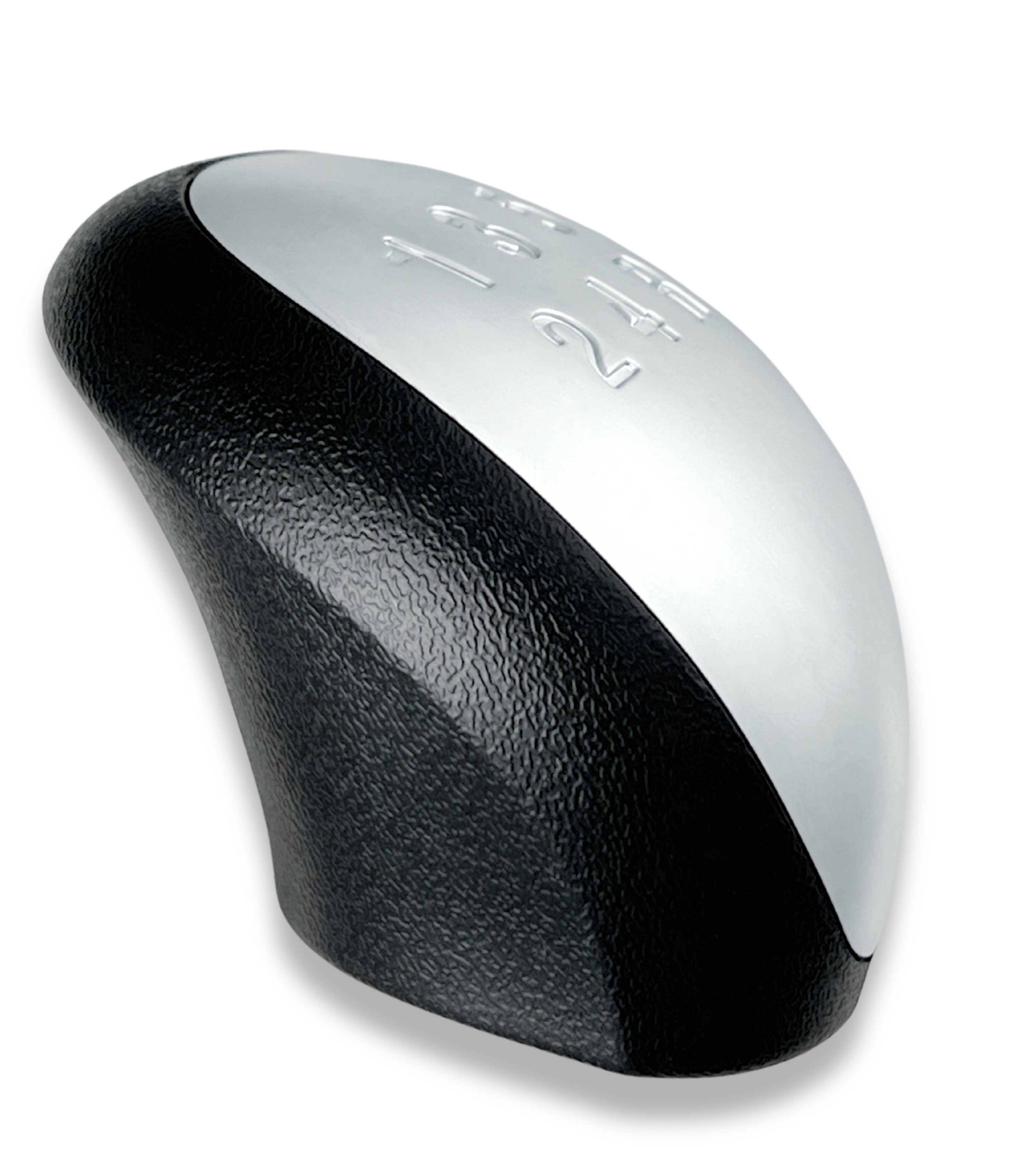 Placca superiore in finitura argento satinato con numeri delle marce incisi nello stesso colore