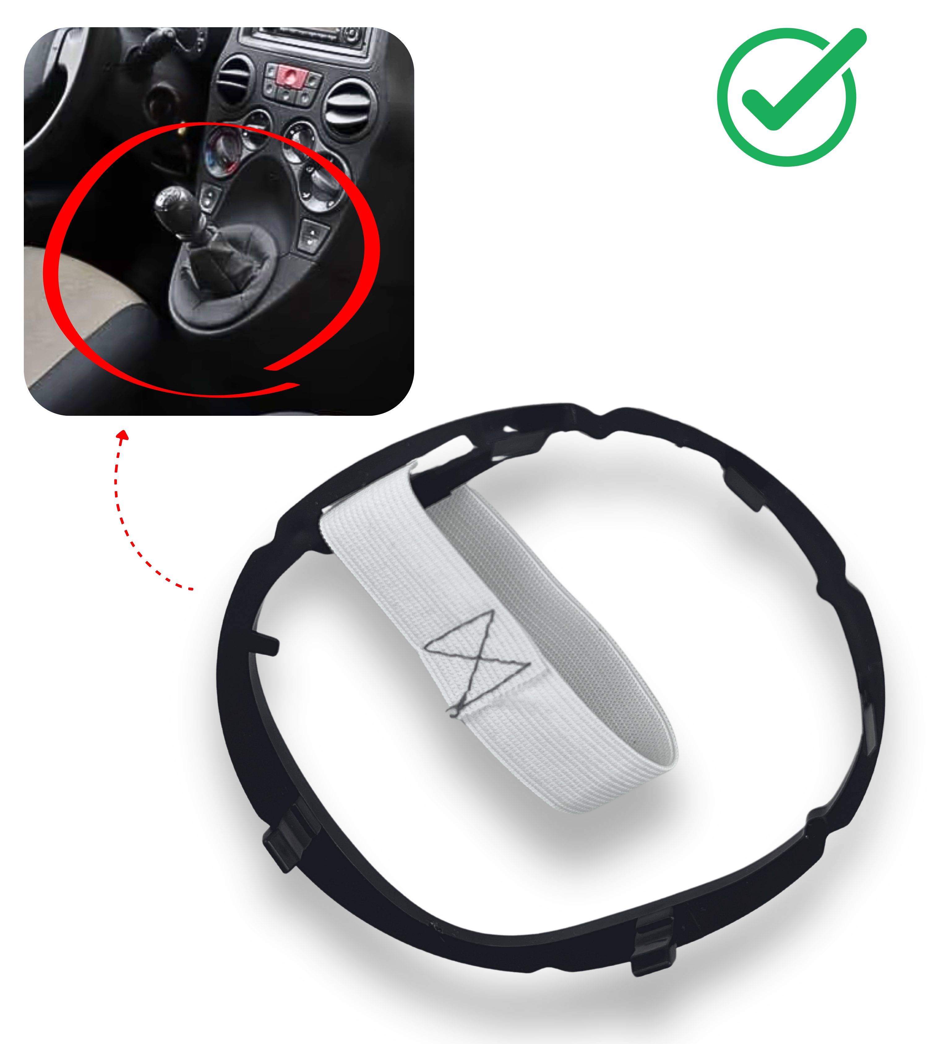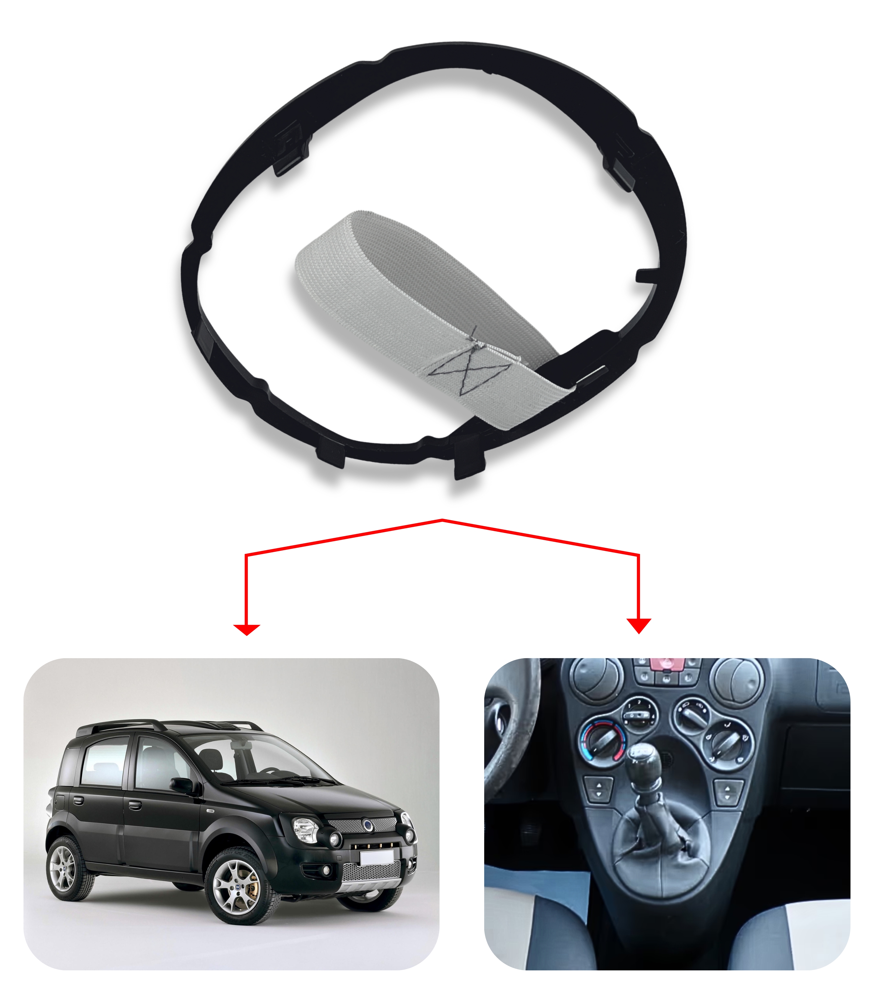 Ghiera di ritenzione (telaio interno) compatibile con Fiat Panda 169, seconda generazione (2003–2012). Progettata per sostituire la ghiera originale danneggiata, consente il fissaggio sicuro della cuffia alla leva cambio su modelli con trasmissione manuale.