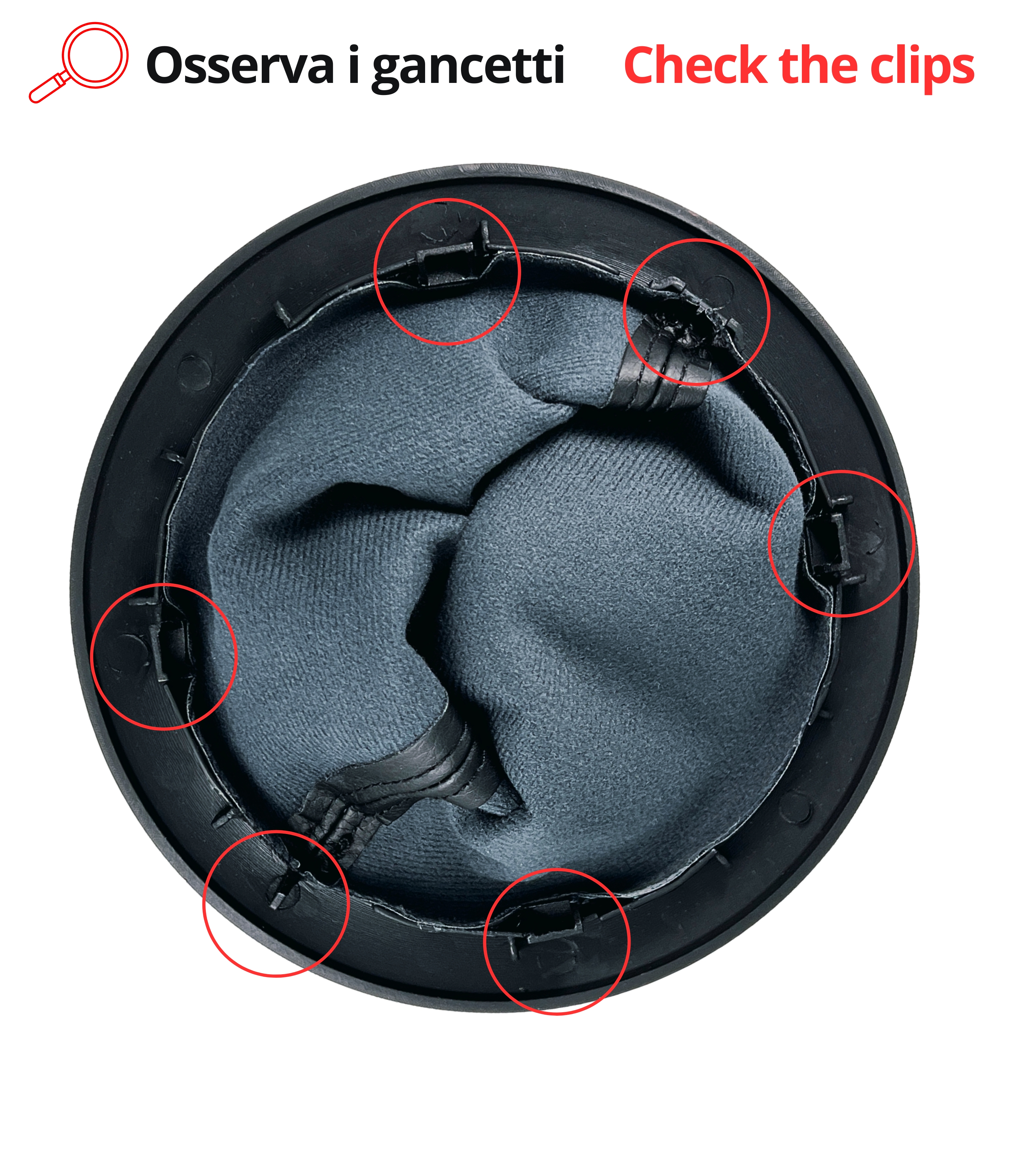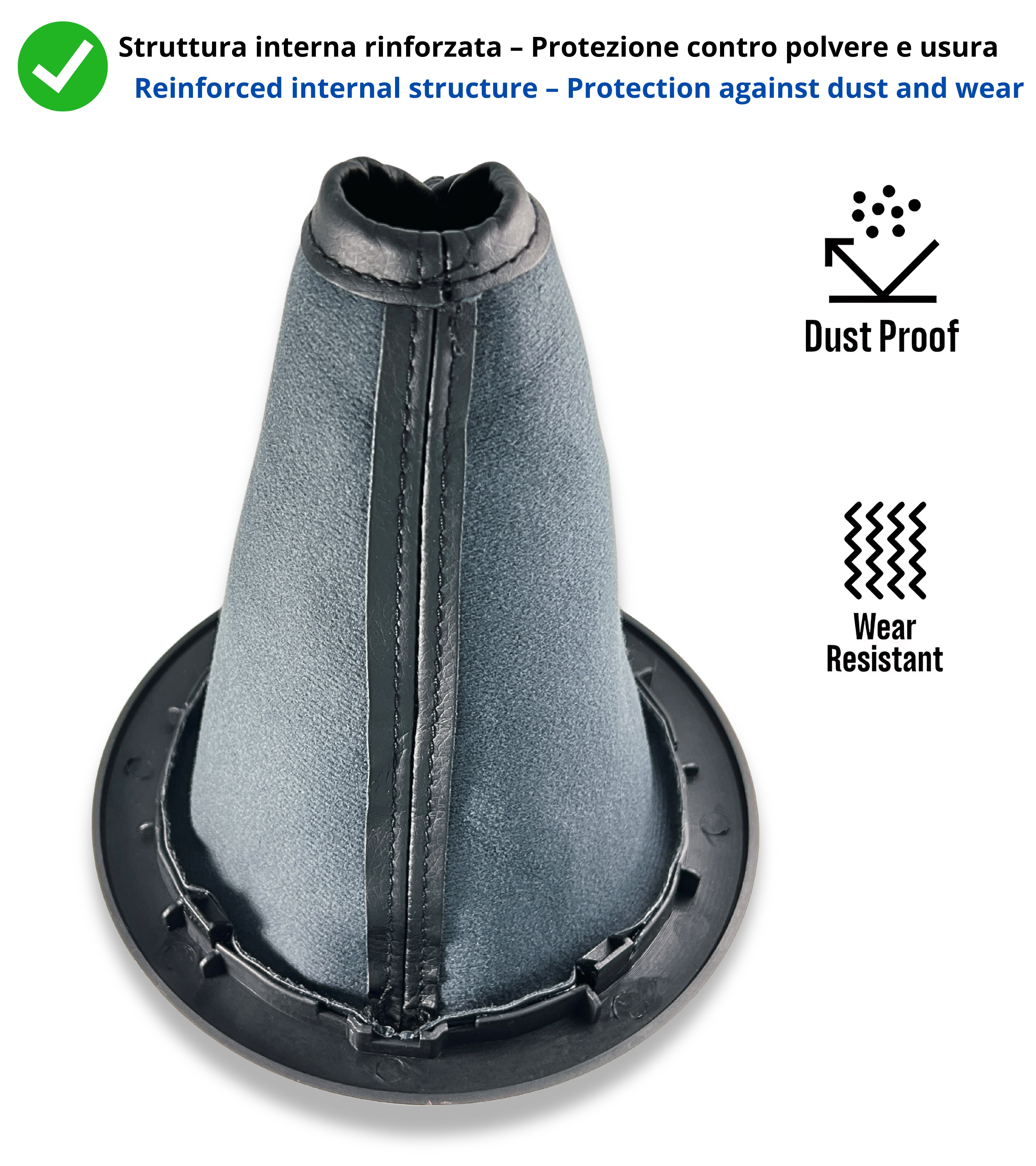 La cuffia è di colore nero, con cuciture tono su tono. Realizzata in materiale sintetico morbido e resistente all’usura, è progettata per sopportare frequenti cambi di marcia. È dotata di una fascetta autobloccante in nylon per un fissaggio stabile alla leva cambio.