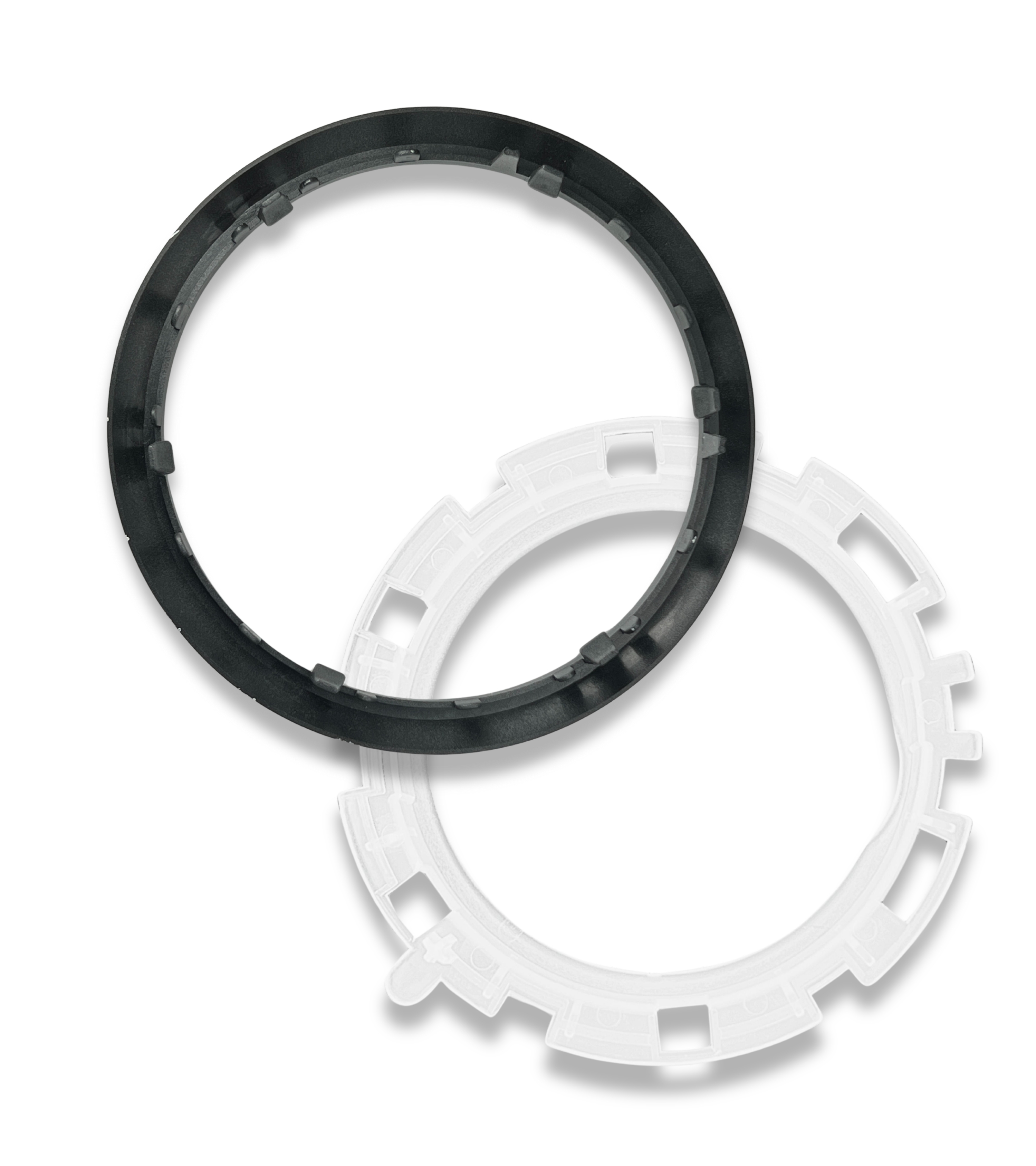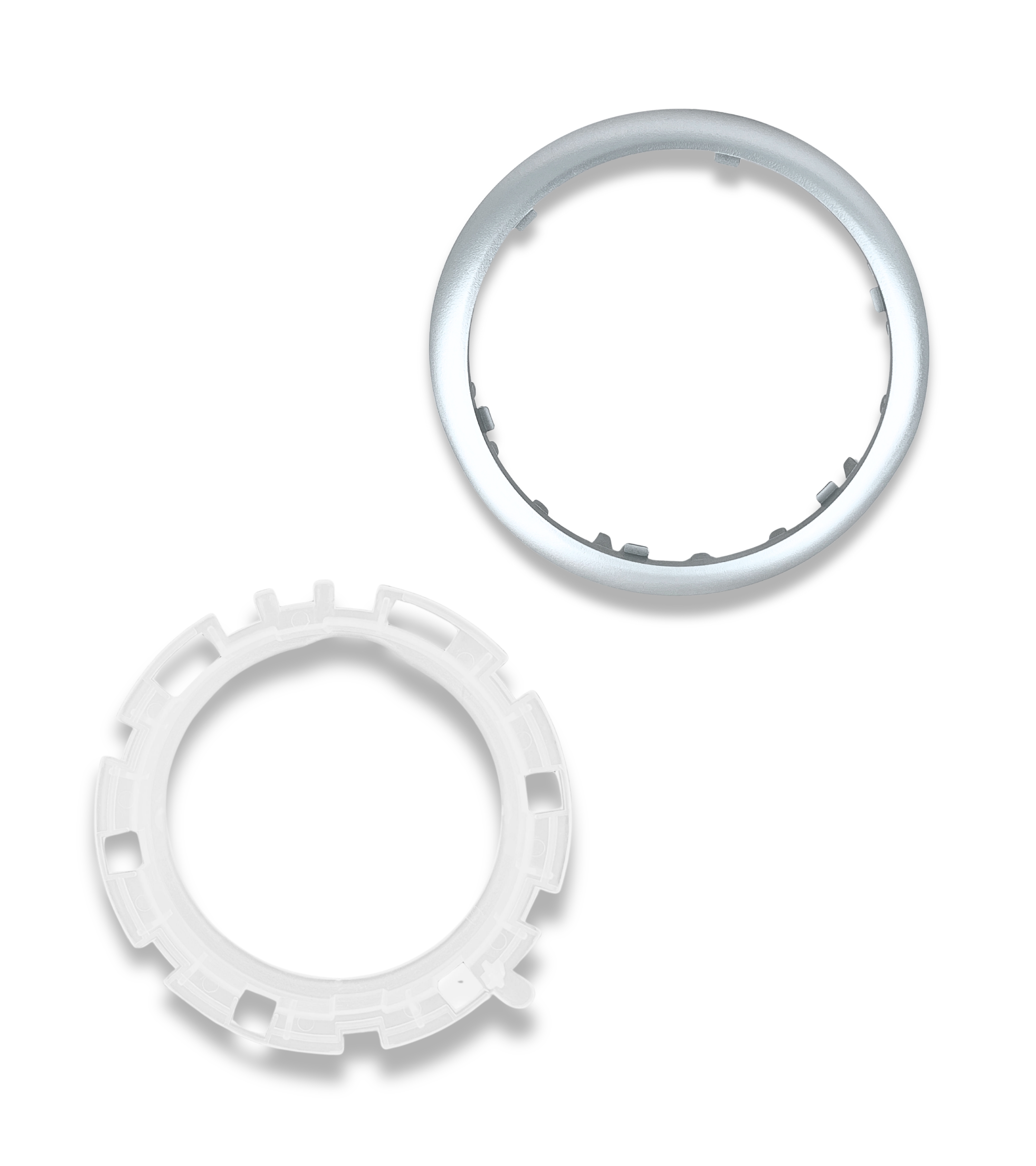 La ghiera è realizzata in materiale plastico molto robusto e rifinito per un'installazione perfetta. Il telaio esterno è realizzato in plastica abs dal design unico ed elegante. Entrambi i ricambi sono realizzati per durare nel tempo all'usura.