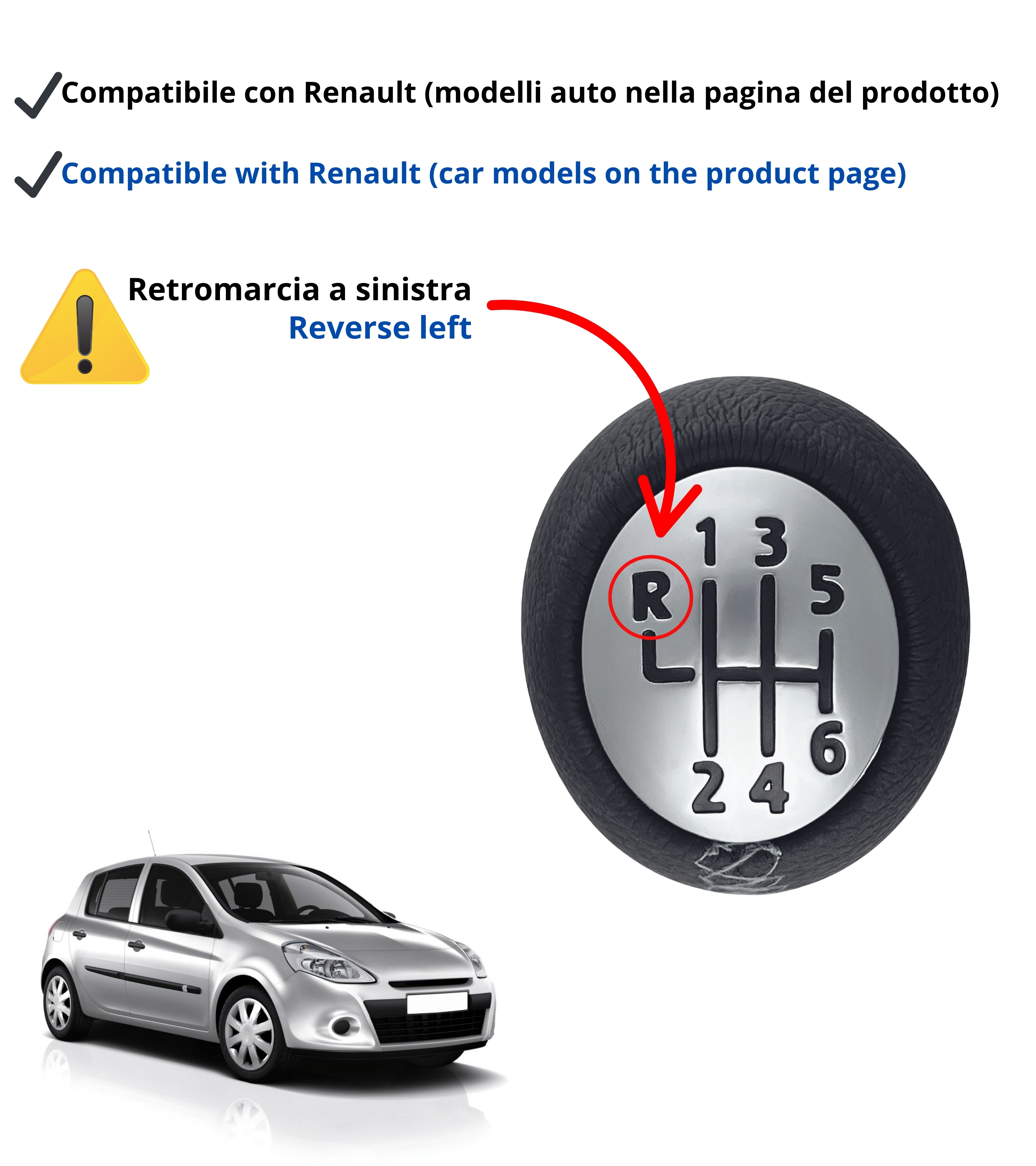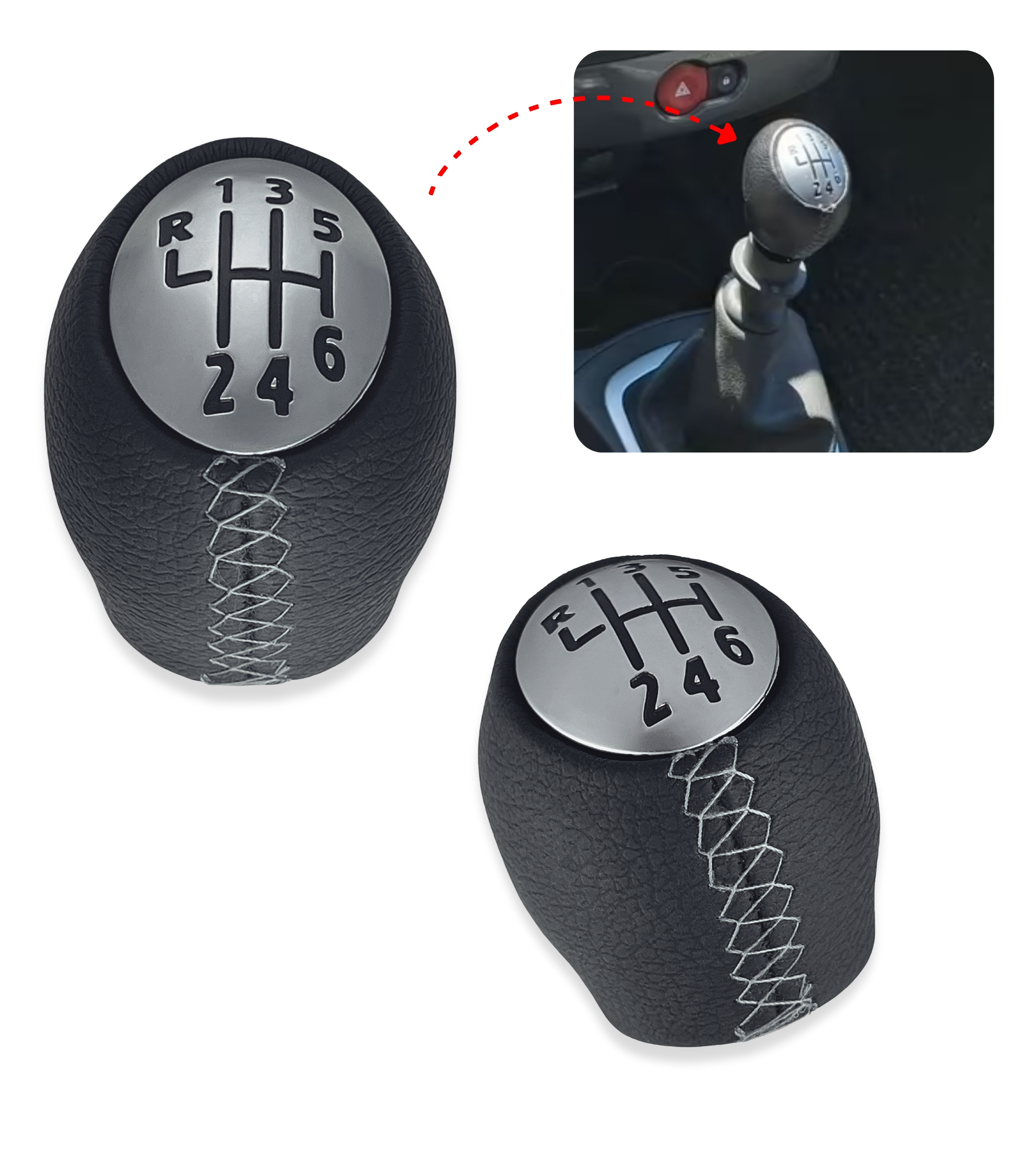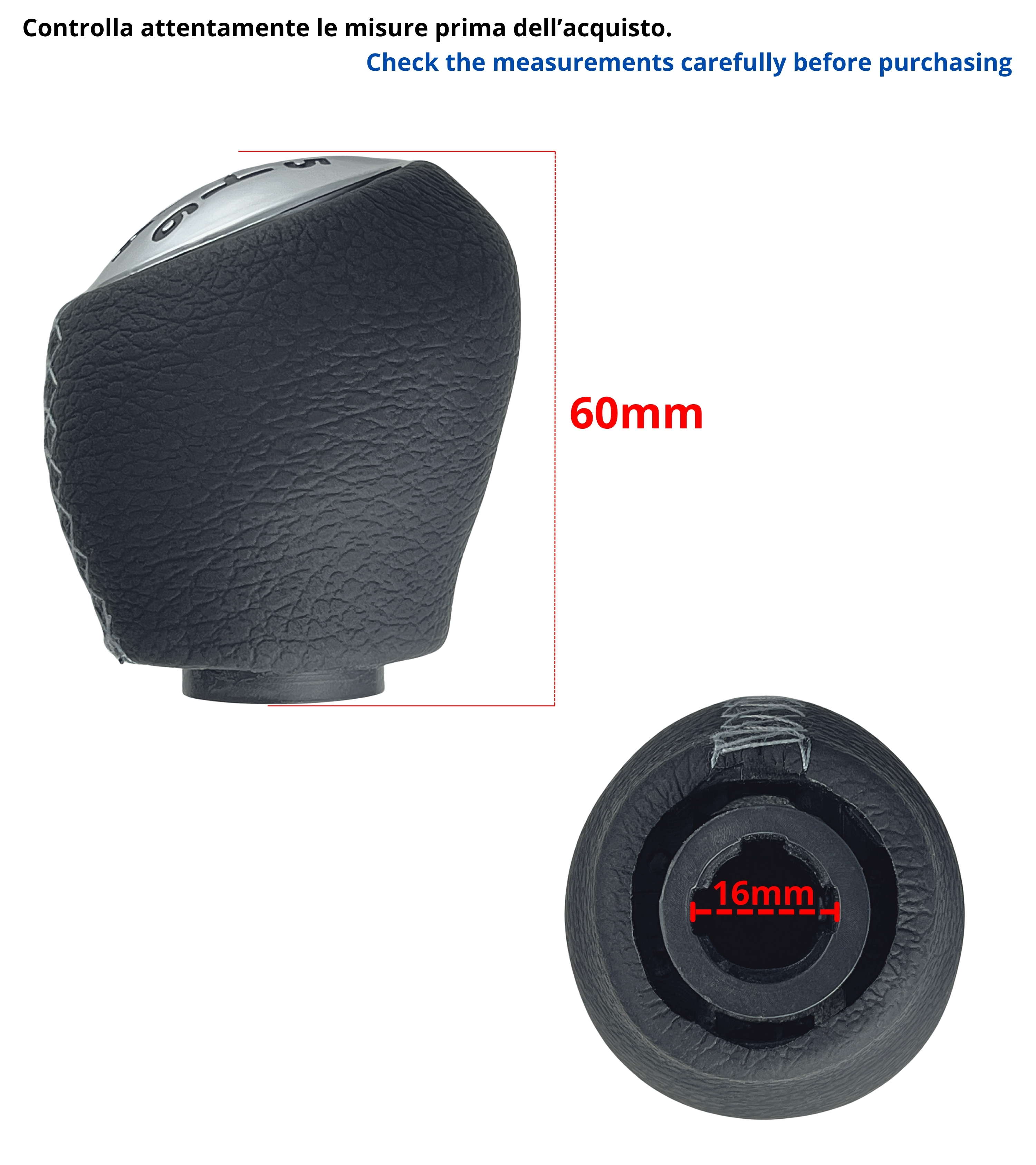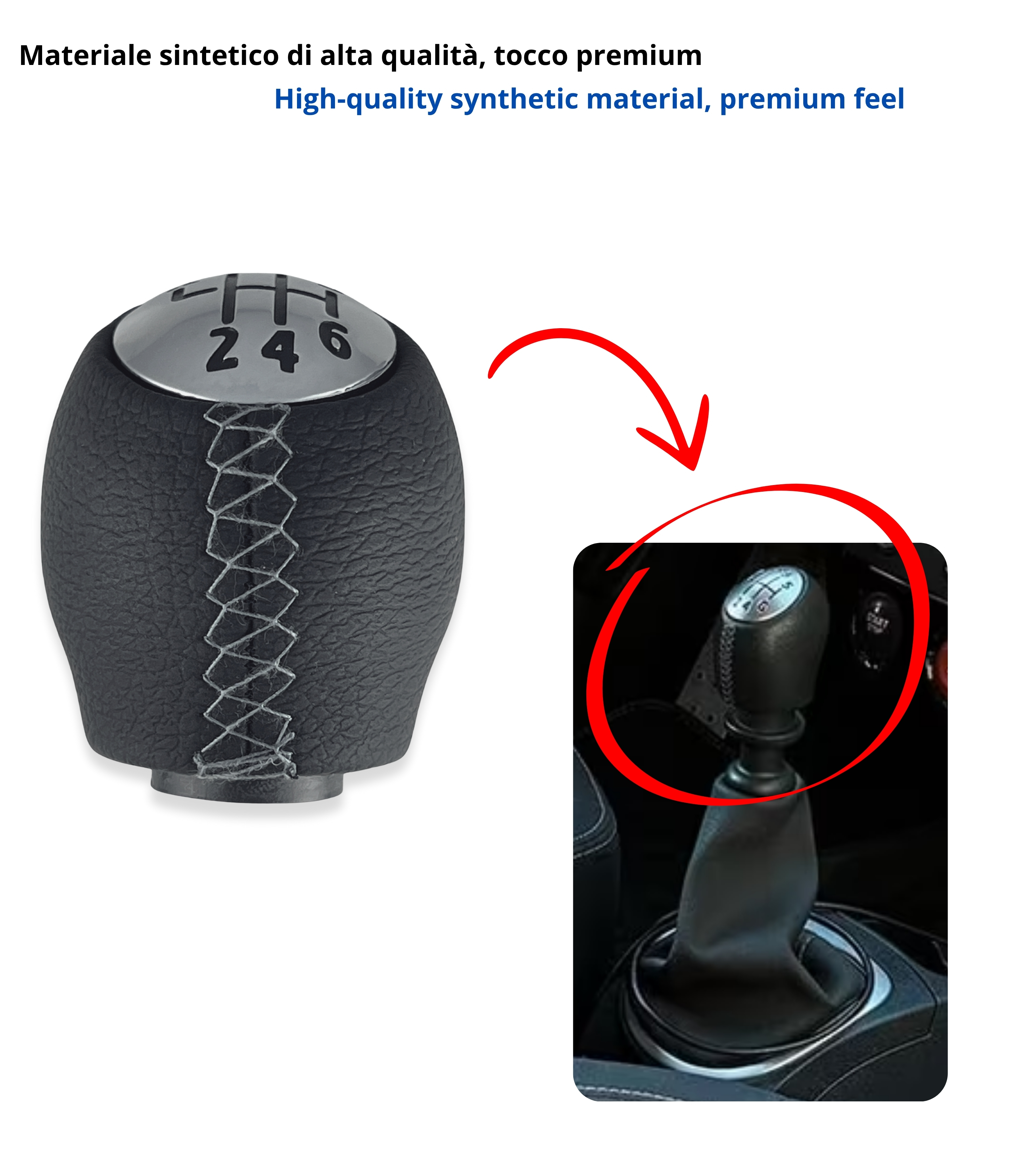 In alcuni casi può essere necessario tagliare la pelle in eccesso nella parte inferiore del pomello per favorire l’inserimento della retromarcia. Si consiglia di osservare attentamente le immagini e verificare la compatibilità con il proprio veicolo prima dell’acquisto.