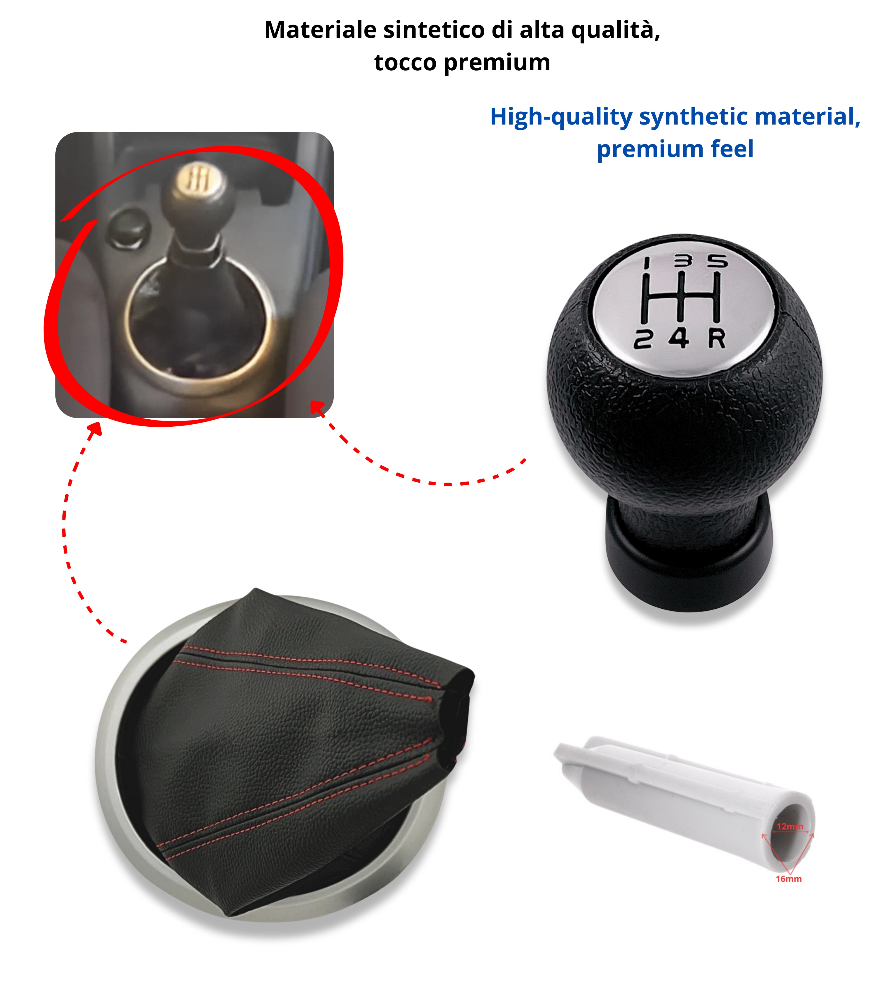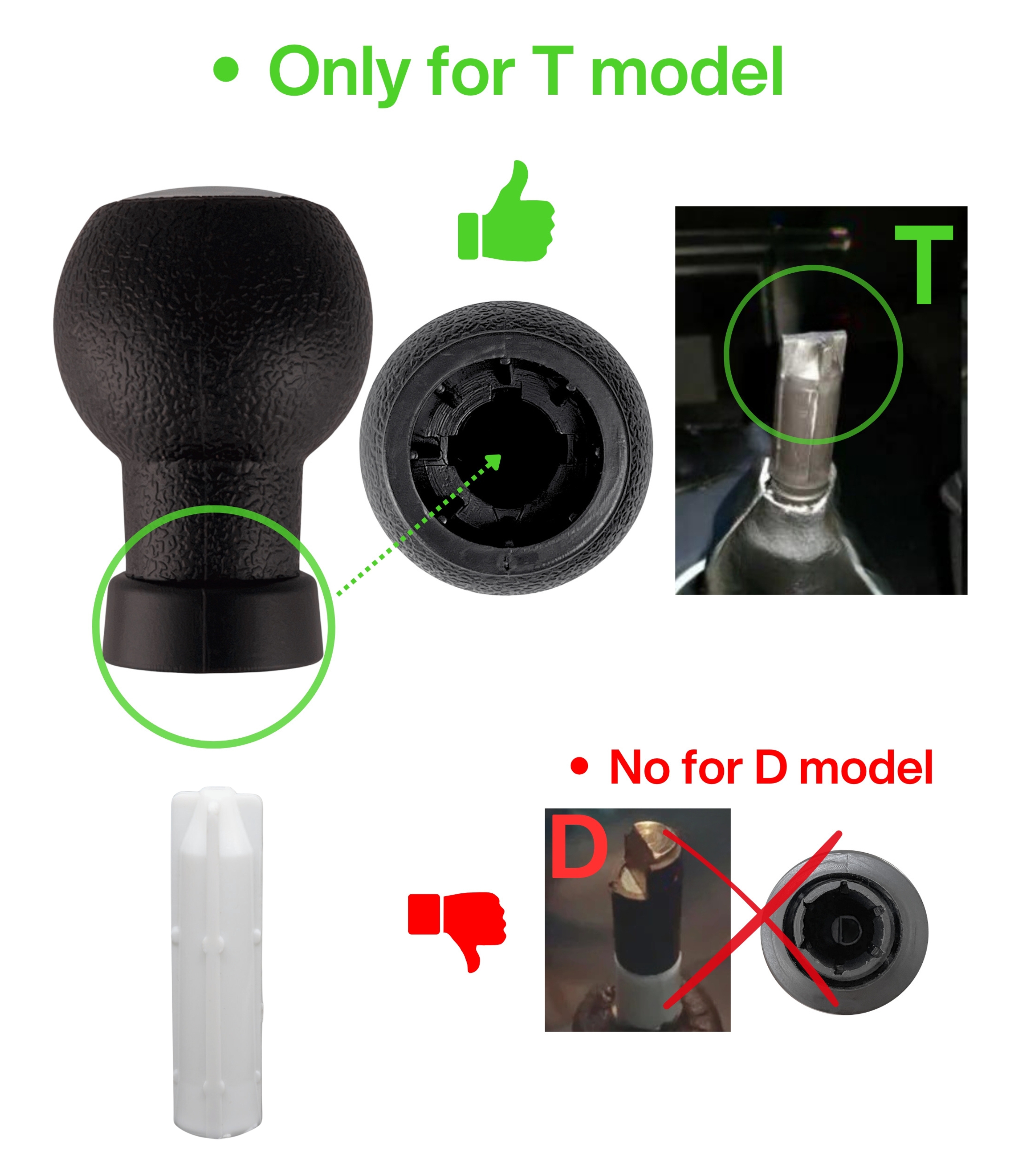 Attenzione: il pomello è adatto esclusivamente alla leva cambio che ha la parte finale con forma a "T". Se hai la leva cambio con forma differente, questo non è il prodotto che devi acquistare. Verifica il dettaglio nelle immagini della galleria.